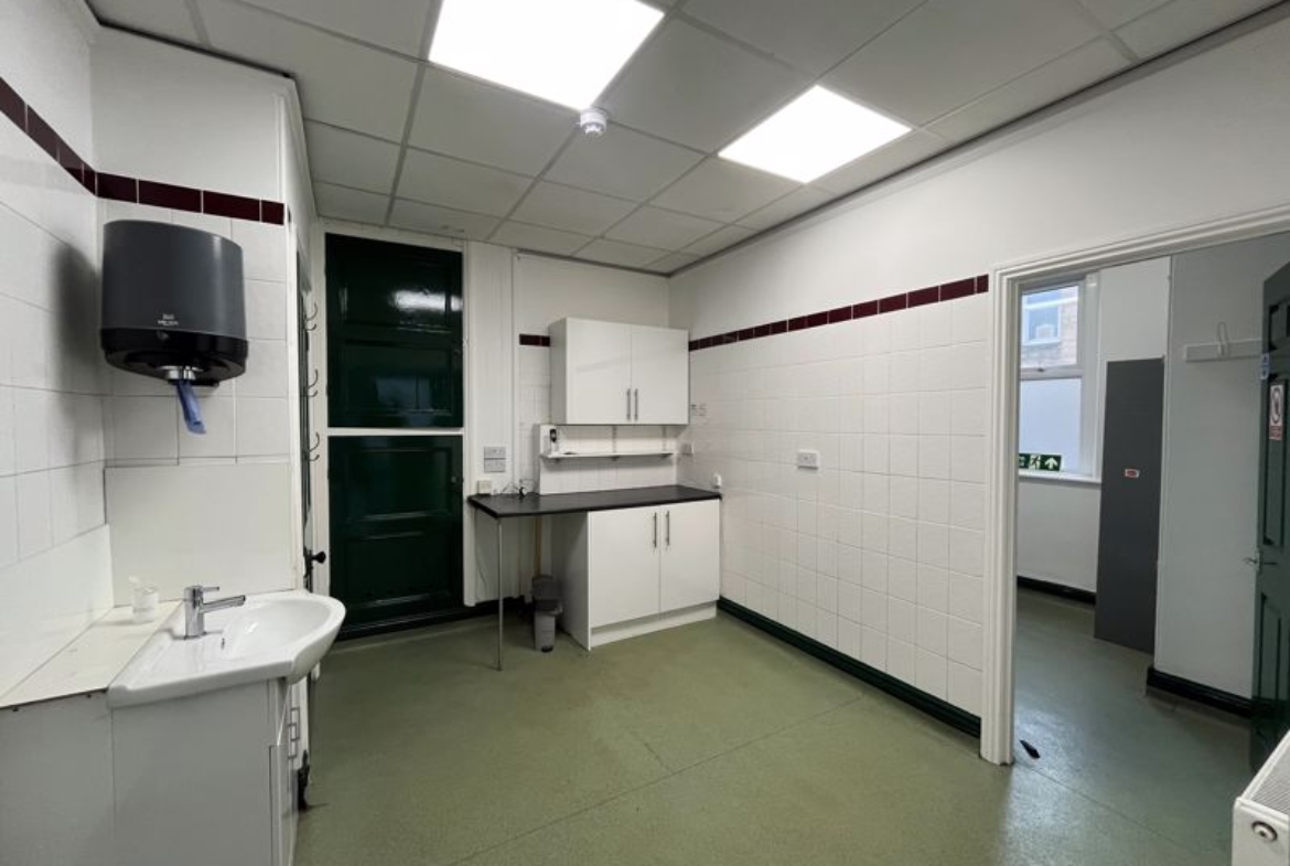Ground floor former vets, and one bedroom flat. Well presented property. Separate outhouse/storage building. Prominent corner position. Excellent passing trade. Courtyard with electric roller shutter.