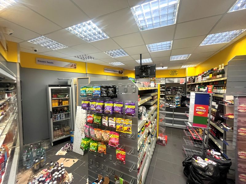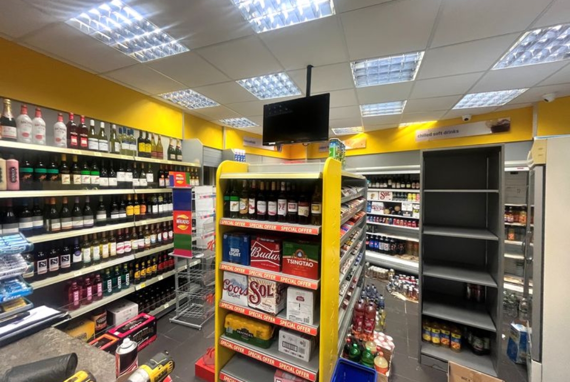 Ground floor retail unit. Net internal area 35 sq. m. (376.7 sq. ft.). Former convenience store / off licence. Prominent location with excellent local footfall. Suitable for various uses, subject to consent. Private designated parking. Zero business rates (subject to eligibility).