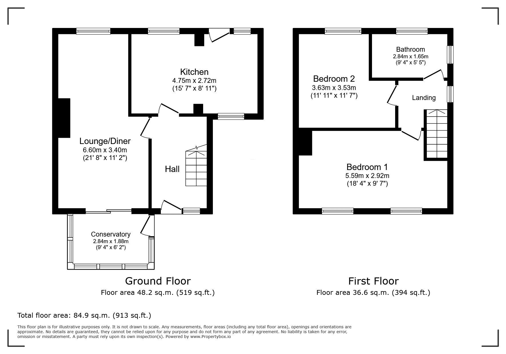 Conservatory: 9’4 x 6’2 (2.84m x 1.88m)