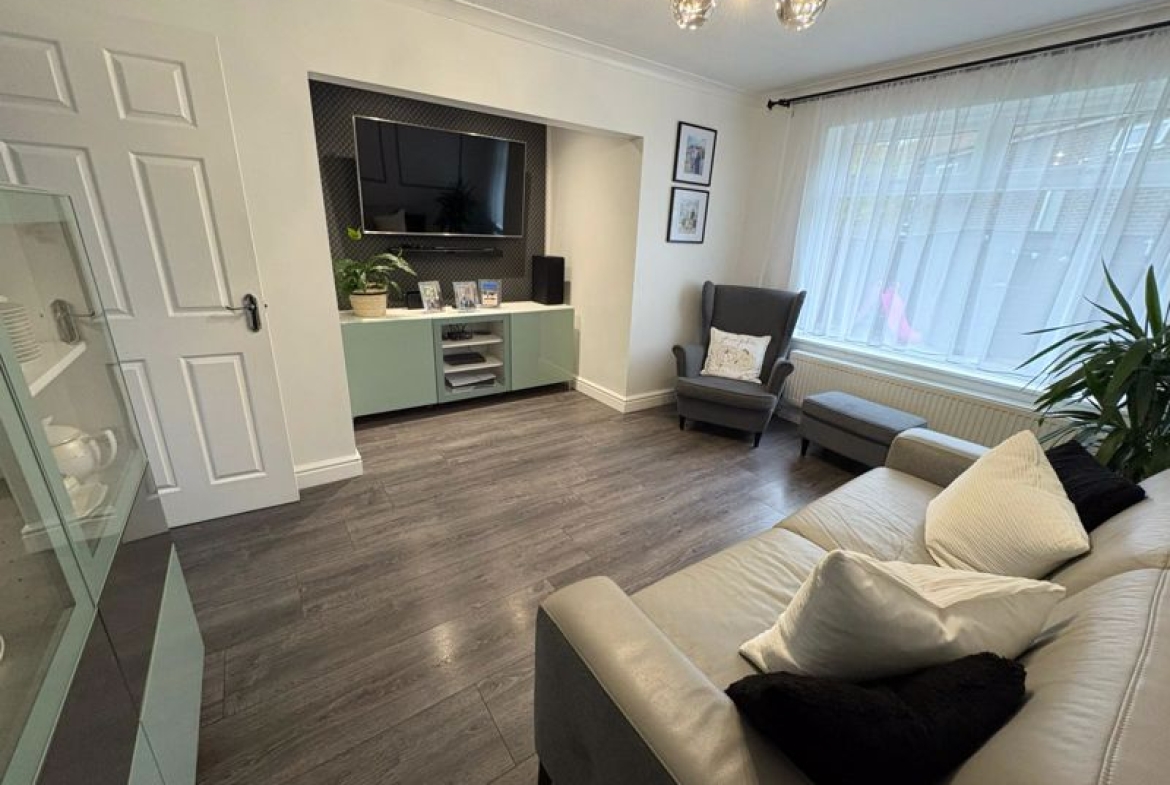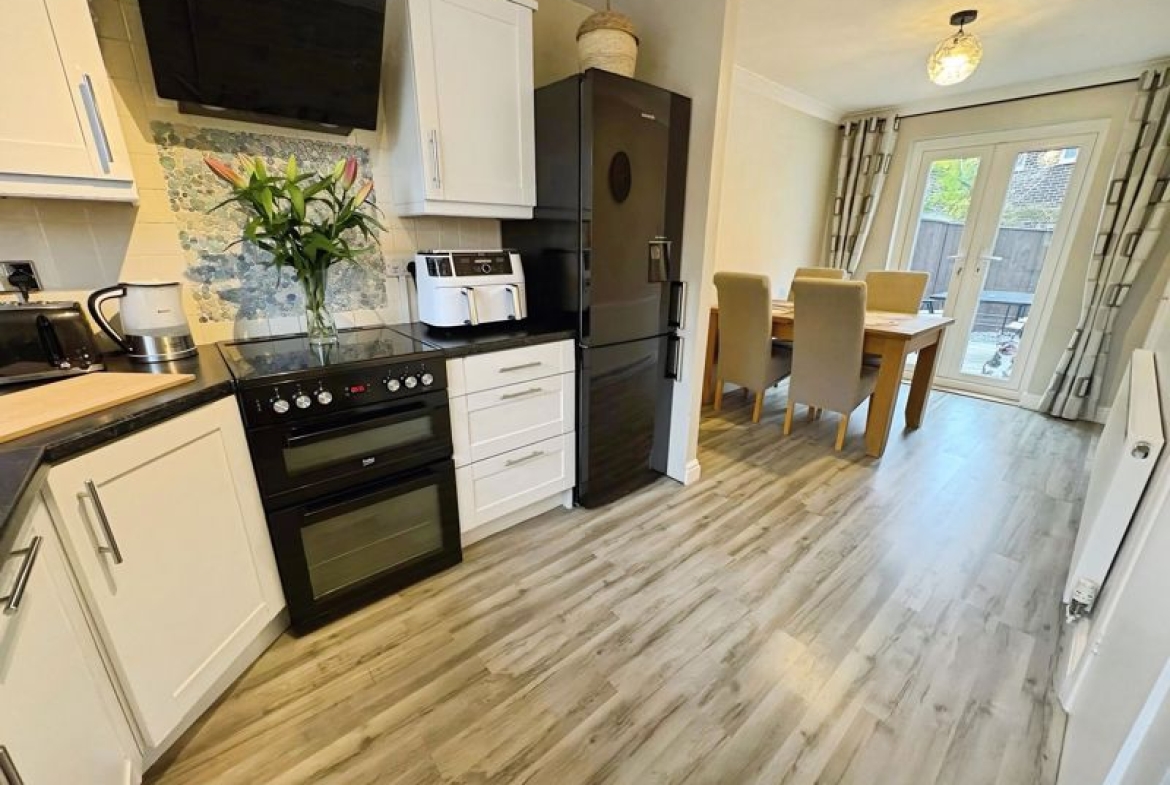 Impressive end link, situated within a cul-de-sac with a south facing garden to the rear. The property is suitable for a range of buyers seeking a comfortable and inviting home. To the ground floor there is an entrance hallway leading to spacious lounge and dining kitchen with garden access. Two double bedrooms to the first floor, bathroom and separate WC. Enclosed garden to the front with wrought iron boundaries and a good sized garden to the rear with lawned and decked areas. Situated close to local schools and all amenities. Do not hesitate to make this delightful property your home.