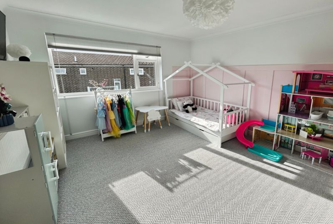 LOUNGE: (rear) 13’3 into bay x 13’7) into alcoves (4.05m x 4.17m) Generous family lounge with double glazed window overlooking garden, radiator