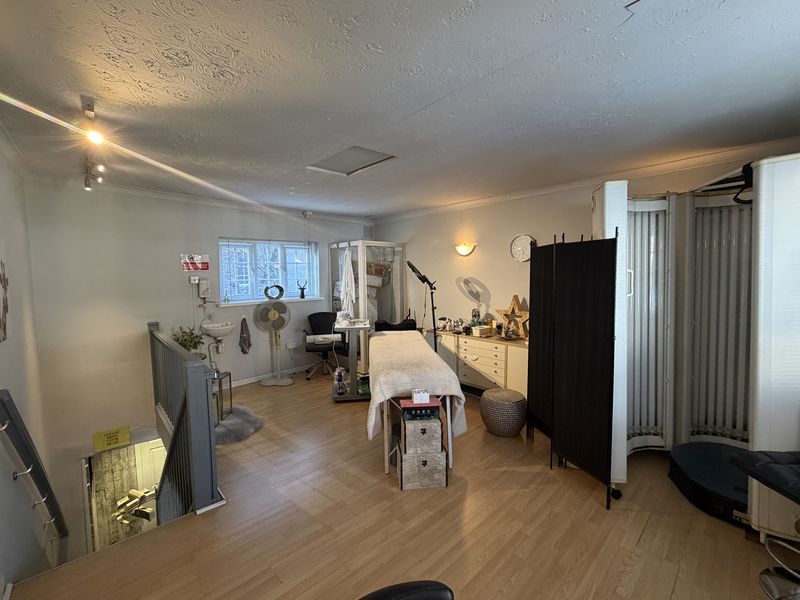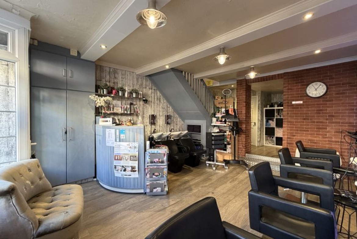 The property comprises a traditional brick-built mid-terrace building beneath a pitched roof. The ground floor is arranged as an open-plan salon space, currently configured with four cutting stations and two backwash chairs, providing a bright and functional working environment. To the rear of the ground floor there is a useful storage area together with WC facilities. Stairs lead to the first floor, which comprises a separate treatment room offering additional flexible space suitable for beauty treatments, consulting use, office space, or alternative business functions.