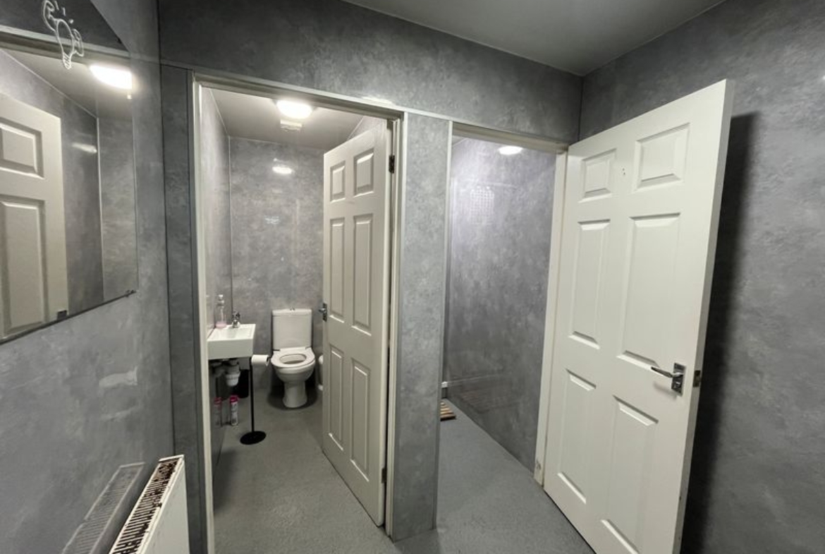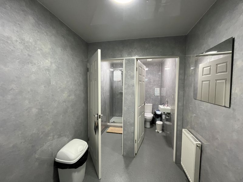 A single-storey end-terrace commercial unit extending to approximately 200 sq. m. (2,152 sq. ft.). The accommodation comprises two large open-plan rooms together with two separate W.C./shower facilities.