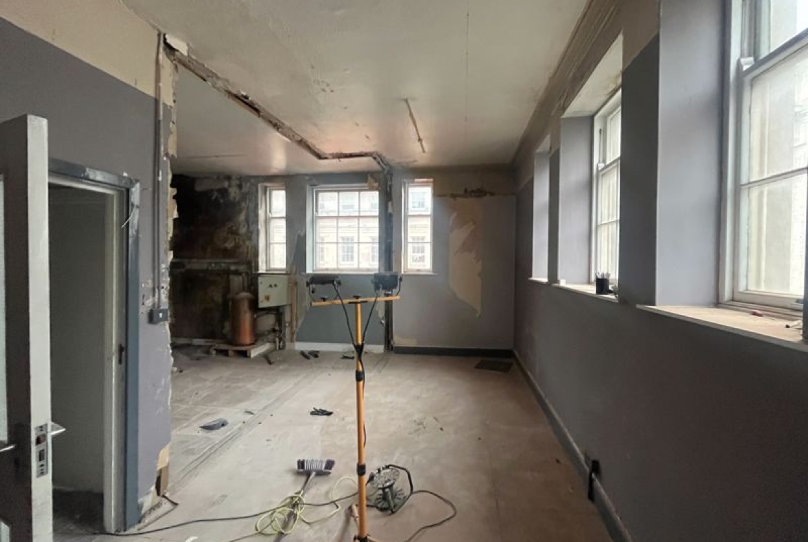 The accommodation has been stripped back to the brickwork, providing a blank canvas for a purchaser to undertake a bespoke refurbishment. Generous natural light throughout creates a bright and airy internal environment. The building is Grade II listed and constructed in sandstone, with the ground floor benefitting from return frontages to both Pilgrim Street and Market Street.