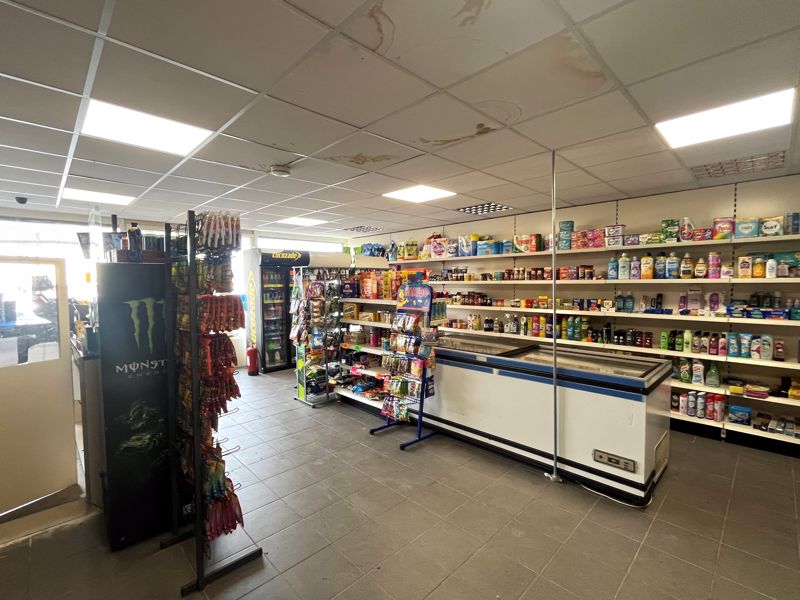 The premises occupy the ground floor of a two-storey parade and benefit from excellent window frontage. The accommodation extends to approximately 92 sq. m. (990 sq. ft.), comprising an open-plan retail area, a store/WC, and an adjoining garage accessible both internally and from the side of the property. The unit was previously occupied by a convenience store and would be suitable for a variety of uses, subject to the appropriate planning consent or use class.