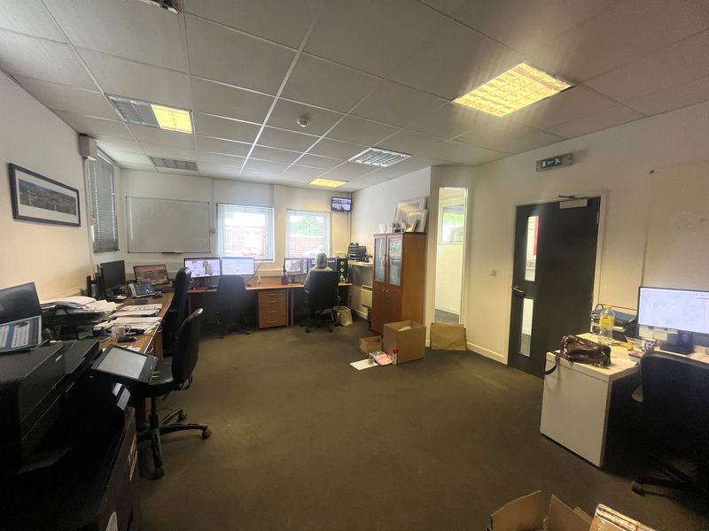The main accommodation consists of a spacious open-plan warehouse area benefitting from electric roller shutter access, CCTV coverage and an intruder alarm system. The warehouse is supported by a range of ancillary accommodation, including offices, kitchen and WC facilities, providing a practical and self-contained operational unit. Externally, the property benefits from on-site parking to the front elevation, together with a fenced grassed area to the side, offering additional external space or potential for alternative uses, subject to the appropriate consents.