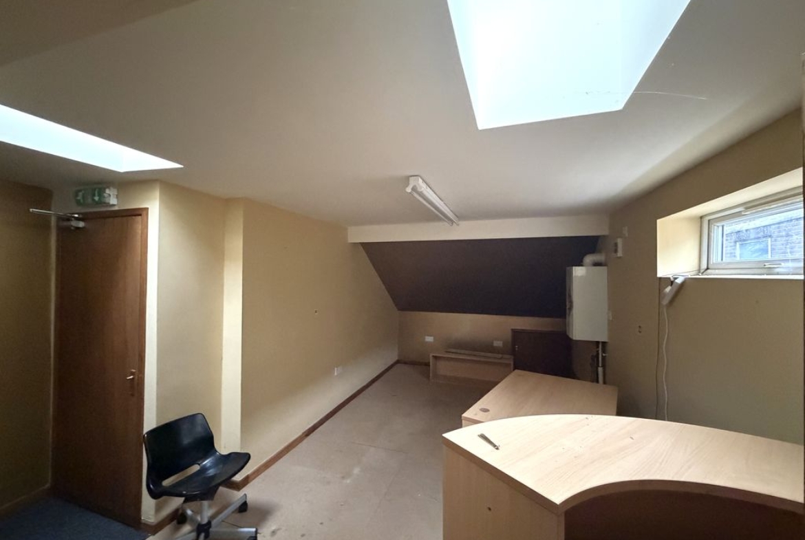 The first floor extends to approximately 17.95 sq. m. (193.21 sq. ft.) and provides additional accommodation currently utilised as office and storage space. This area is well-suited for administrative functions, staff use, or further stock/storage requirements. Overall, the property offers a practical and efficient layout, combining a clear open-plan retail area with useful ancillary accommodation across both floors.