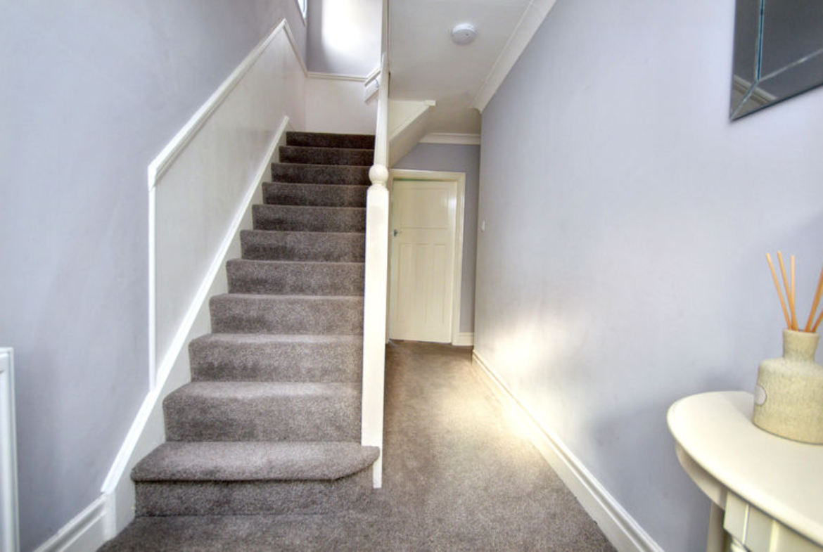 UPVC double-glazed entrance door | Radiator | Under stairs cupboard | Staircase to first floor | Doors to; living/dining room & kitchen
