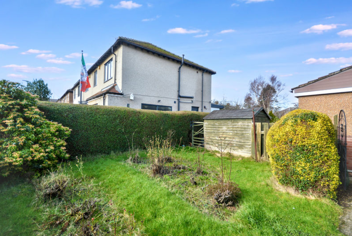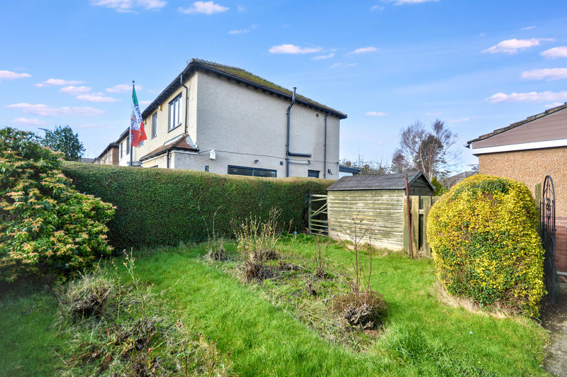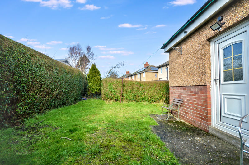 Private garden to the side with a garden shed. Mainly laid to lawn which narrows as it continues around to the rear of the property