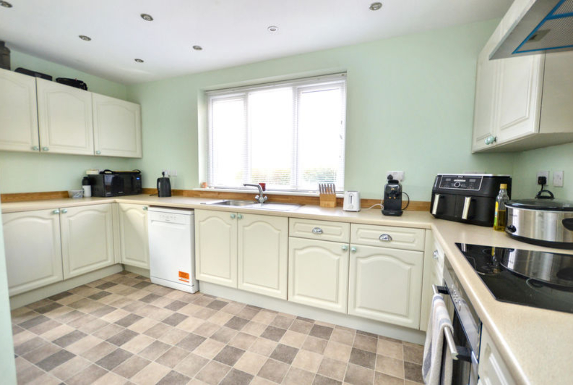 The ground floor features a welcoming living room which opens seamlessly into the dining room, creating a wonderfully bright and light-filled dual-aspect space—perfect for both everyday living and entertaining. To the rear, an extended dining kitchen offers generous worktop and storage space, along with ample room for a table and chairs, making it the true heart of the home.
