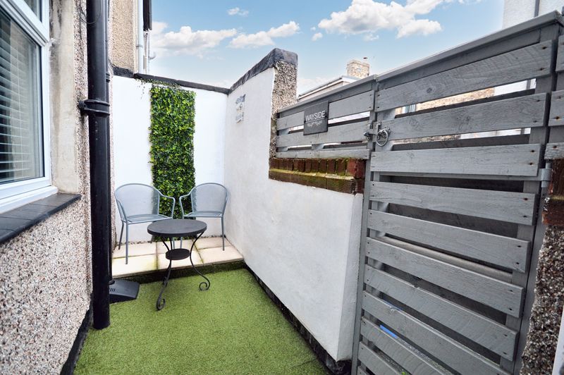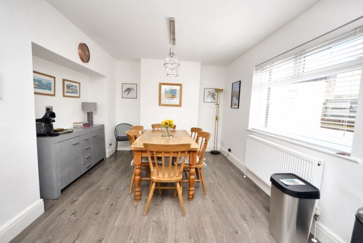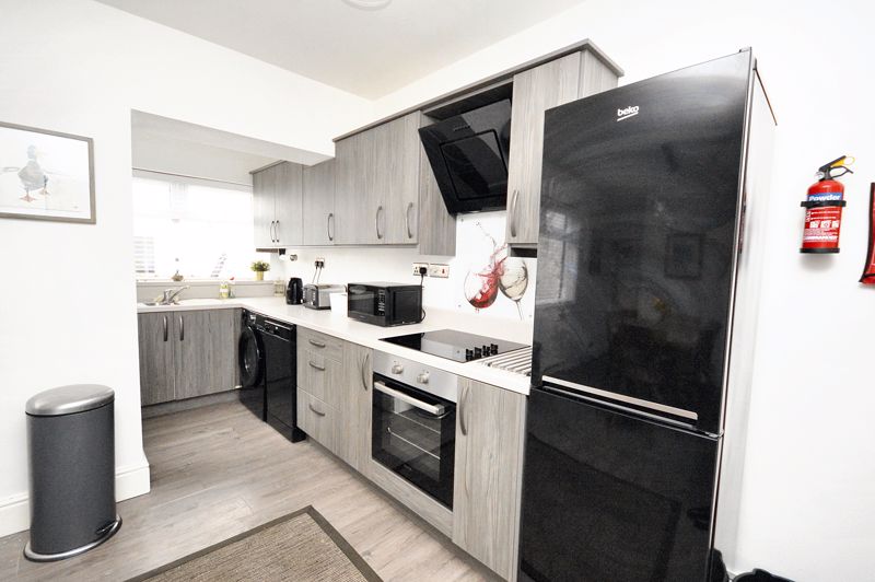 UPVC double-glazed windows with fitted blinds | UPVC double-glazed external door to small yard | Radiator | Laminate floor | Feature pendant lamps | Under stairs cupboard.