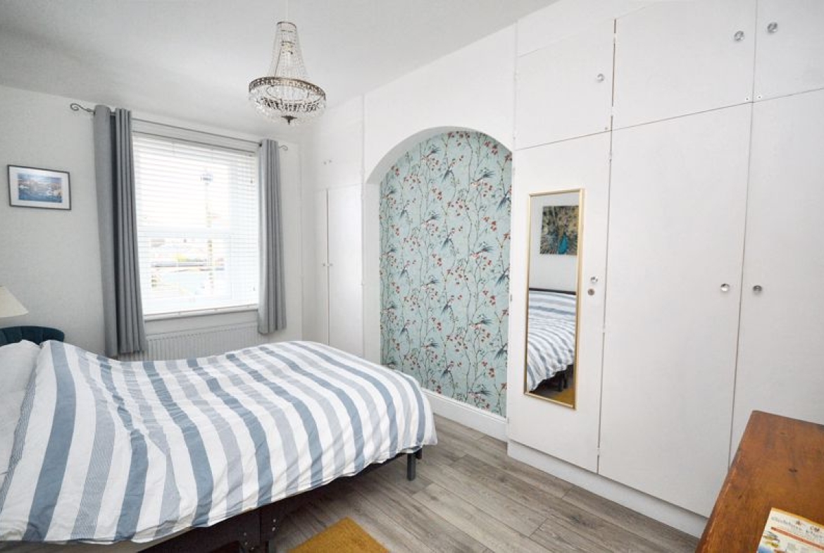 UPVC triple-glazed window with fitted blinds |Fitted wardrobes in alcove | Radiator | Laminate floor