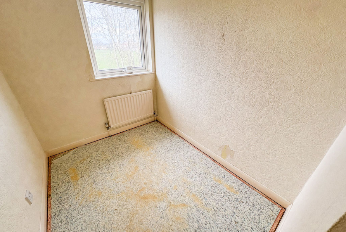 BEDROOM TWO: (rear): 9’12 x 8’13, (2.77m x 2.47m), Radiator, double glazed window