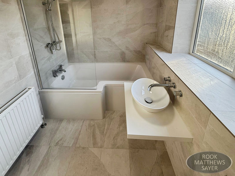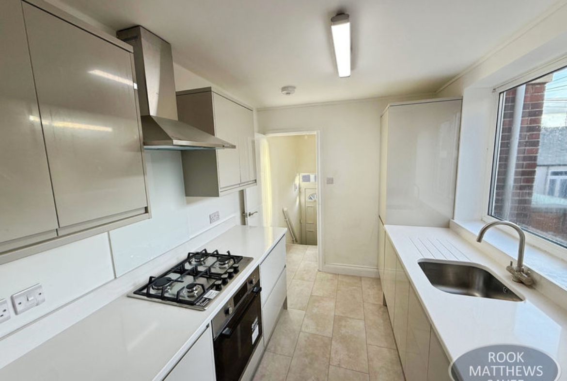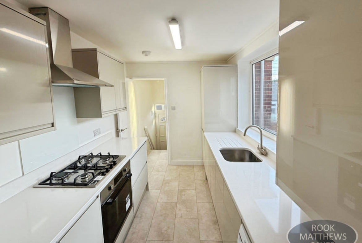 The property features three well-proportioned bedrooms, a contemporary fully fitted high-gloss kitchen with integrated appliances, and a modern three-piece bathroom suite with shower. Additional benefits include UPVC double glazing and upgraded gas-fired central heating via a combination boiler.