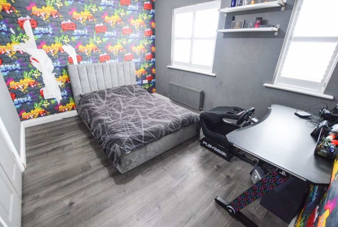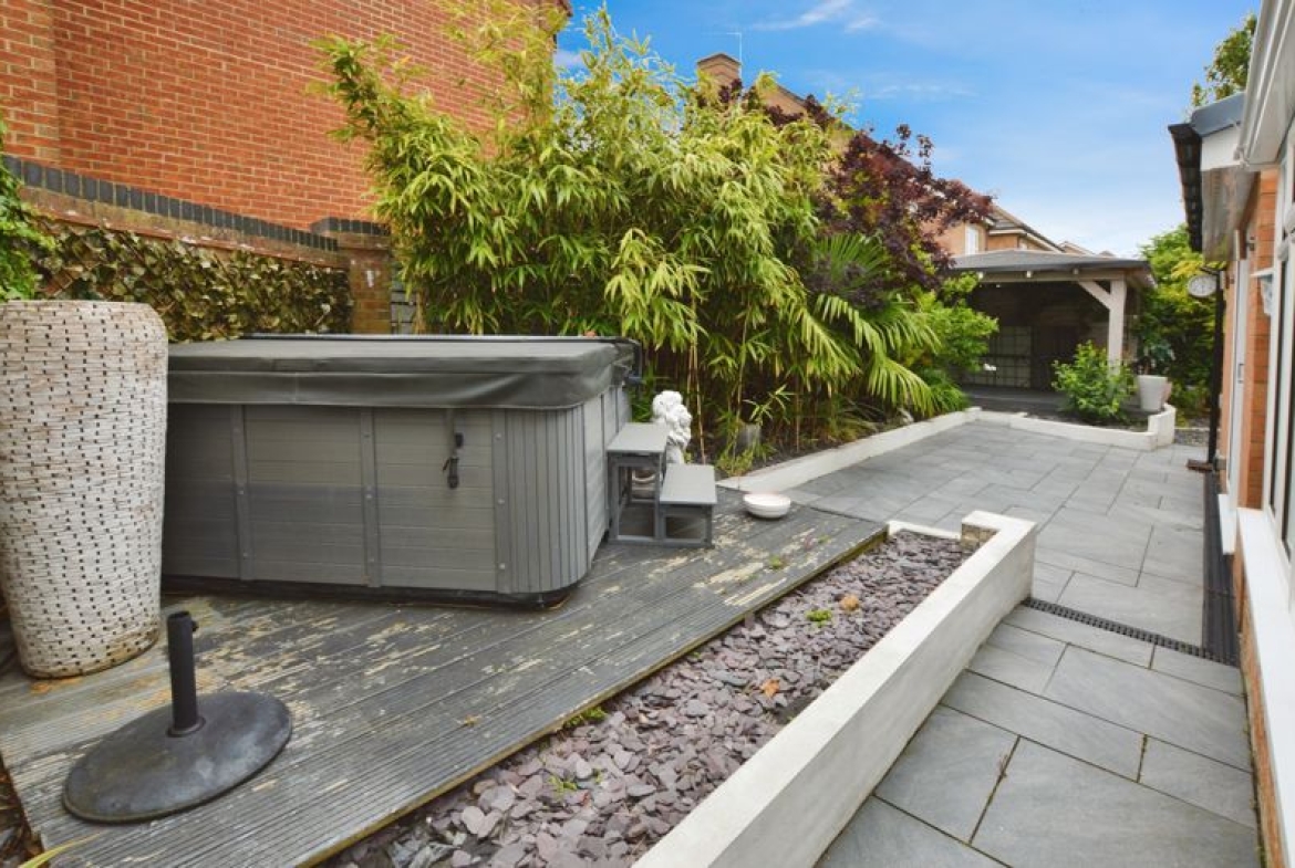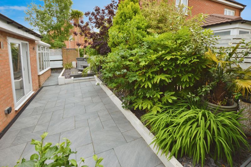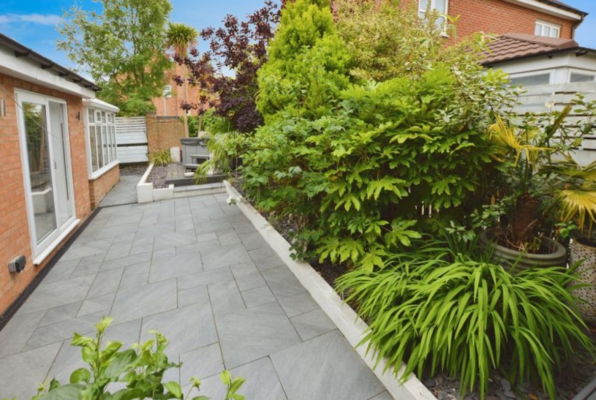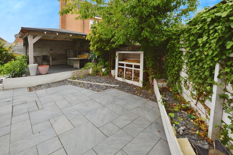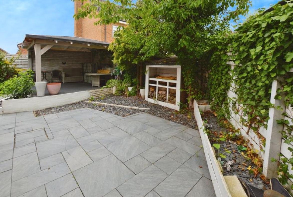 Outside, the rear garden has been thoughtfully designed for low maintenance living, with gated access to the front and a charming gazebo offering a sheltered retreat for alfresco dining or relaxation. To the front, the garage has been converted to provide additional storage, while the property also benefits from two off-street parking spaces.