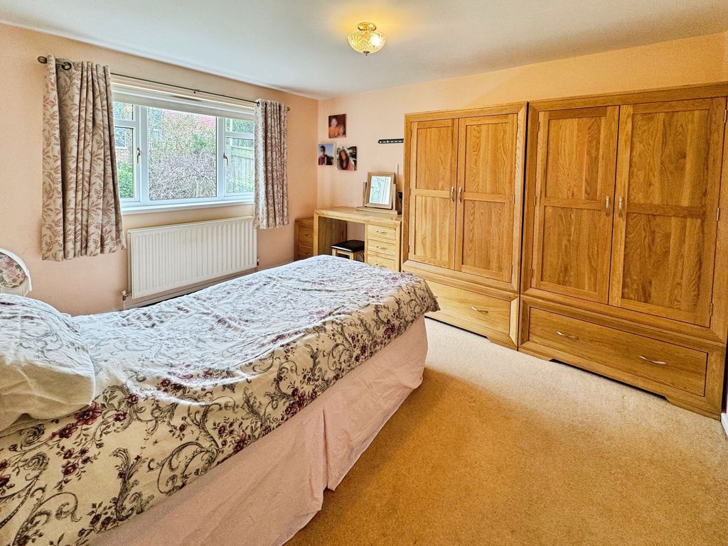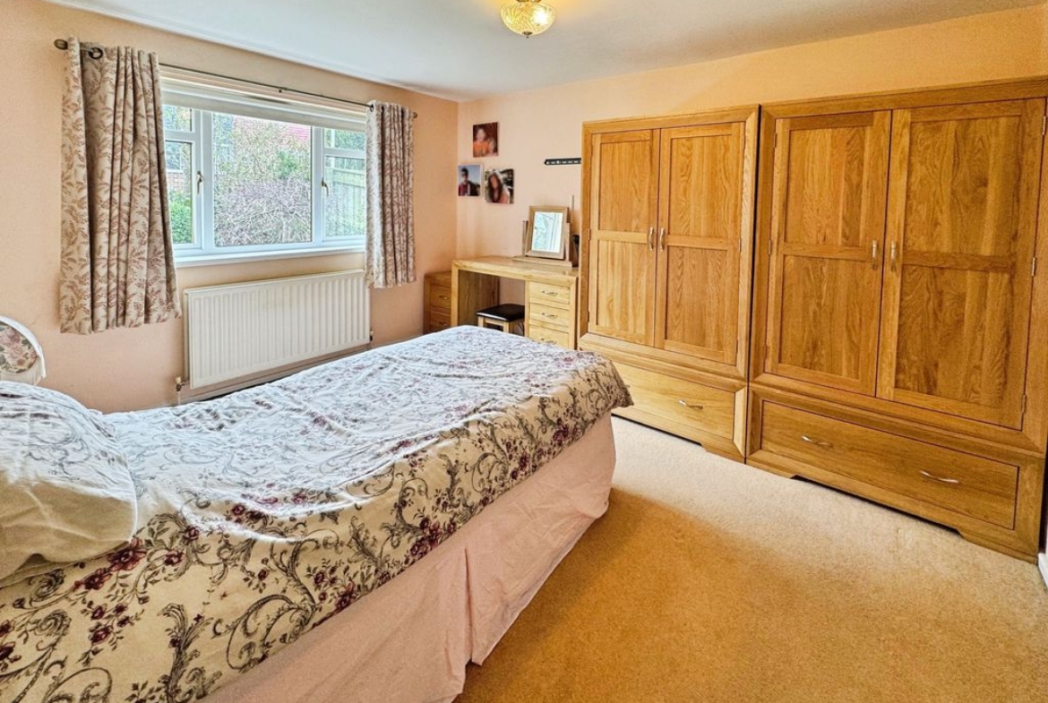 On the ground floor, there is a reception room with large windows and a garden view, arranged to accommodate both living and dining space. The kitchen includes integrated appliances. A downstairs bedroom with en-suite facilities offers additional flexibility for occupants. Upstairs, there are two double bedrooms and one single bedroom, together with a family bathroom fitted with a shower over bath.