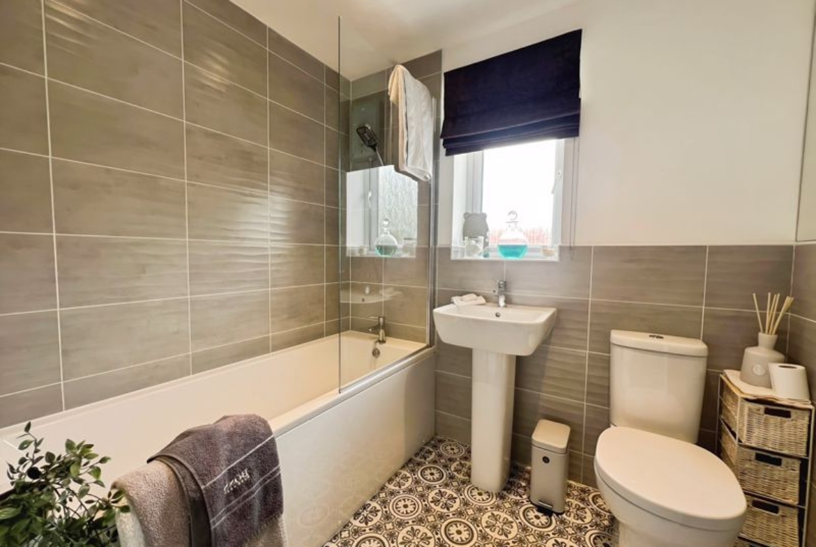 Boasting four spacious bedrooms, all double in size, the master bedroom is a real treat. It features two windows inviting natural light and an en-suite bathroom with a well-appointed shower. The remaining three bedrooms are equally well-furnished and share a family bathroom, tastefully decorated and functional.
