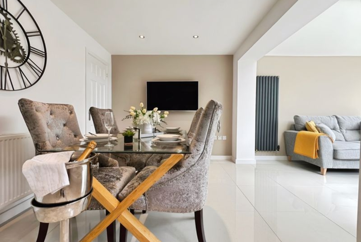 Presenting for sale, a stunning detached house in immaculate condition, ideally suited for families. This property is a master class in design and efficiency with an impressive EPC rating of B and falls under the Council tax band E.