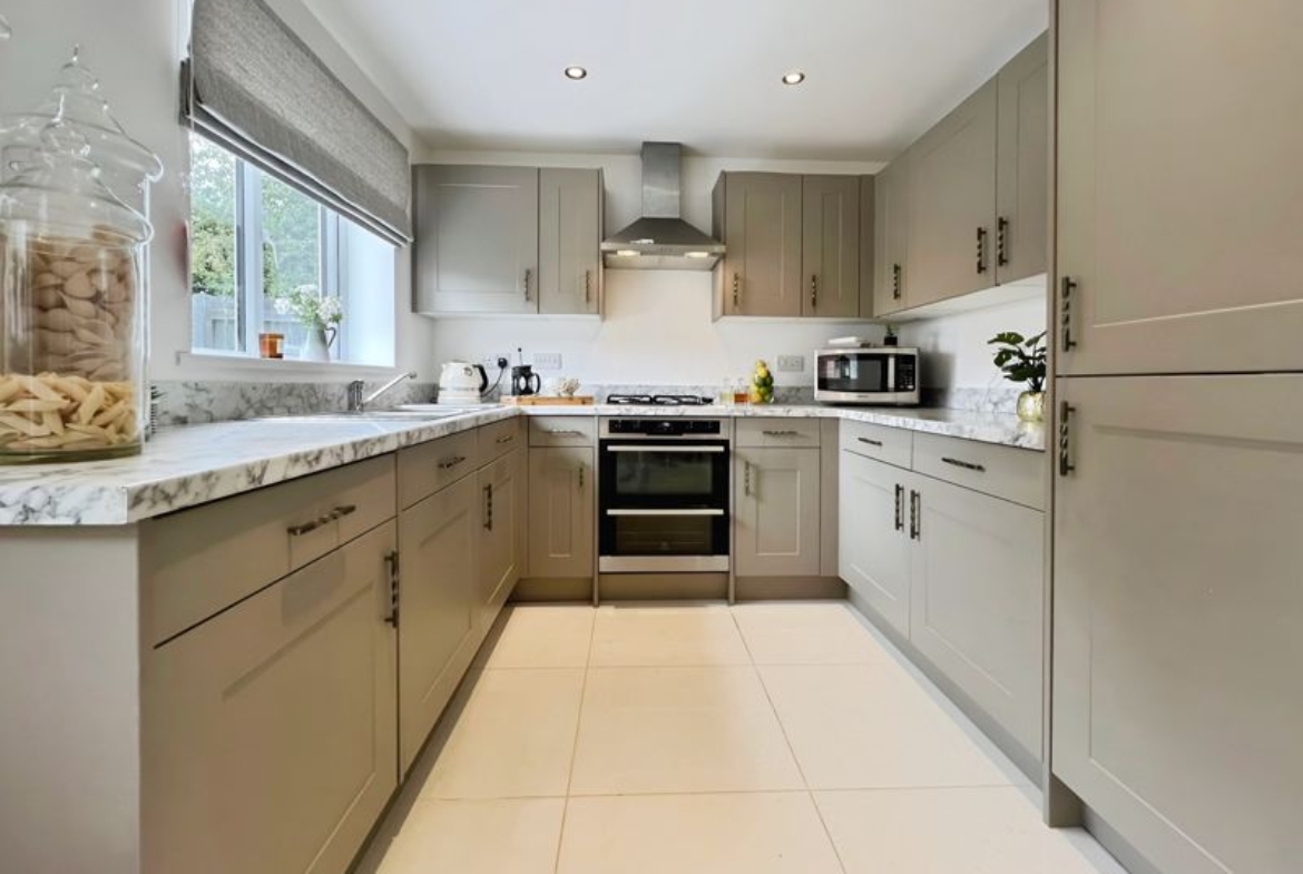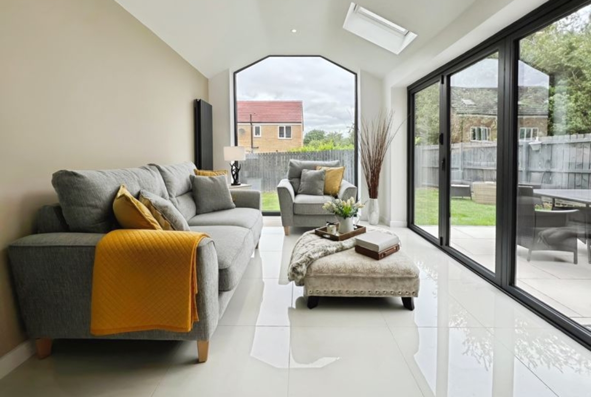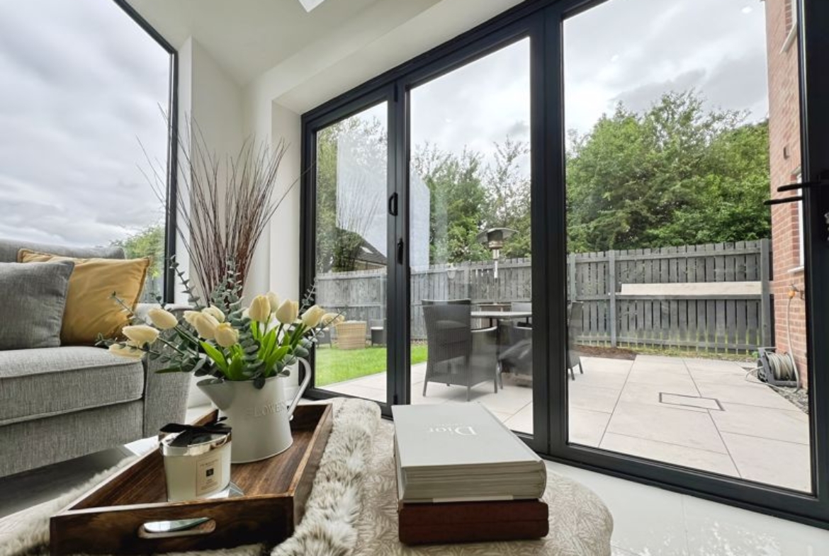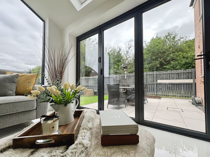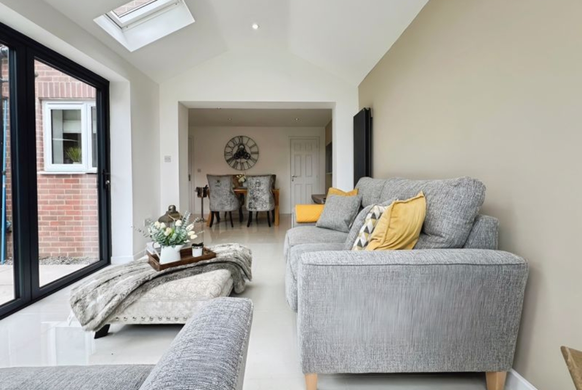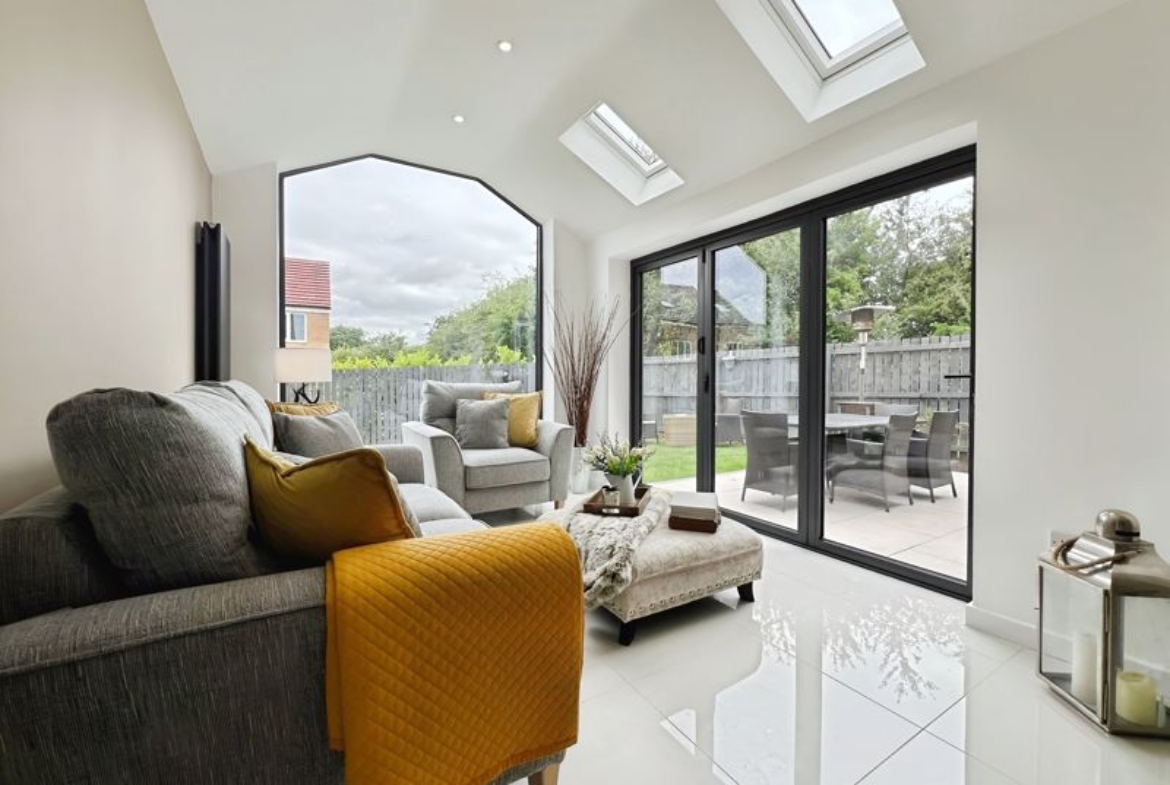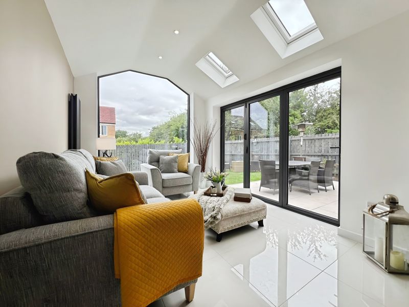 Adding to the appeal are two reception rooms. The first reception room is tastefully designed with large windows providing a formal living space to the front of the house. The second is a sunroom off the kitchen, featuring bespoke glazed windows and bifolding doors for easy access to the garden, perfect for those sunny afternoons.
