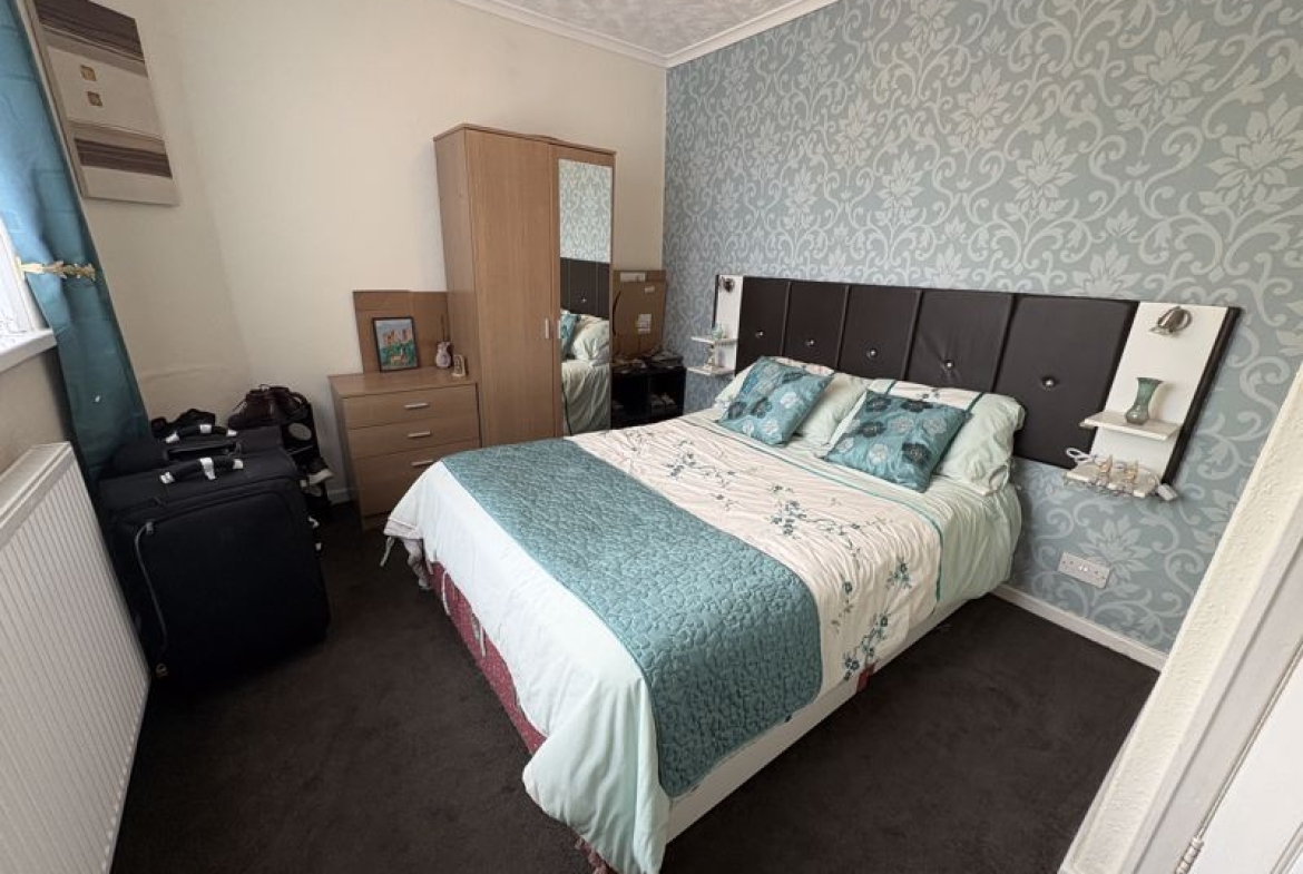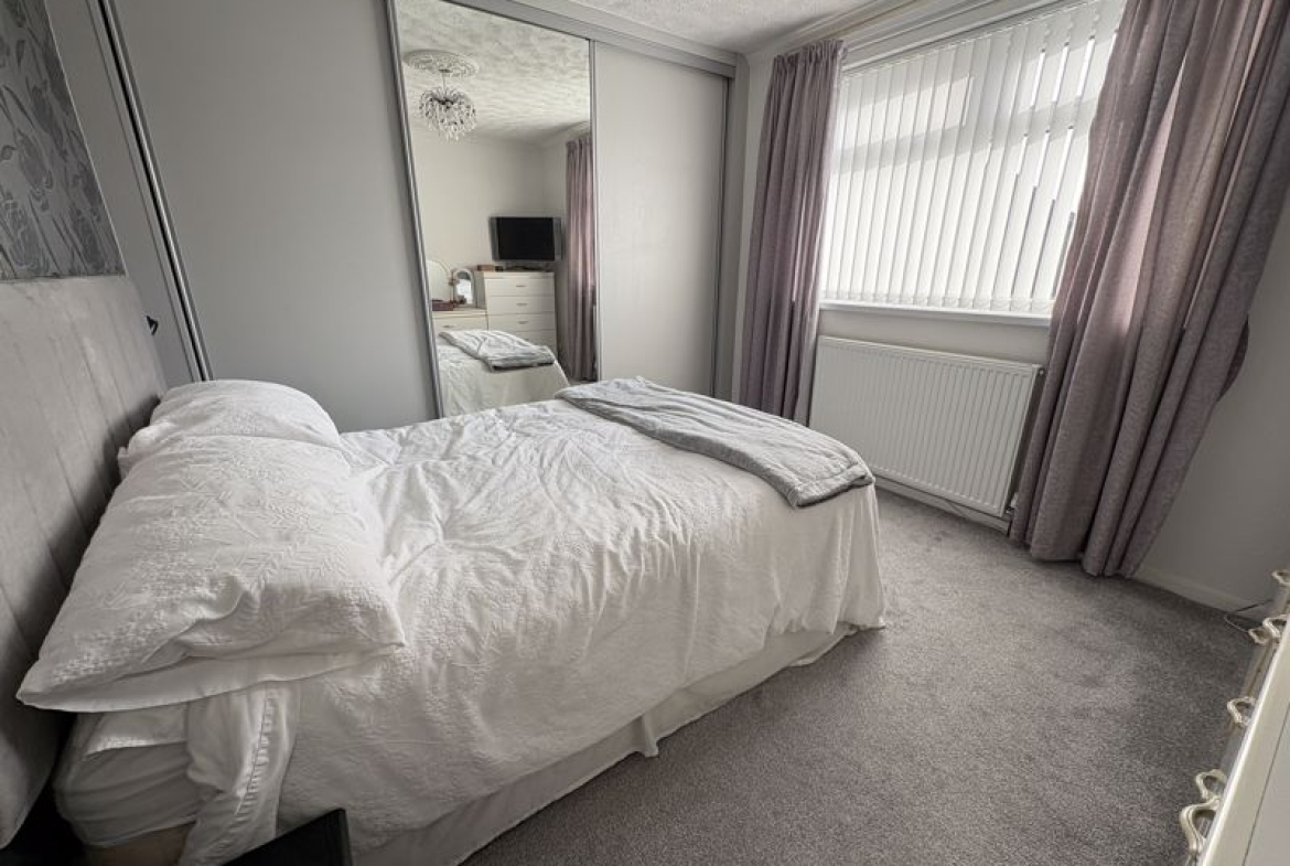 BEDROOM THREE: (front): 10’1 x 7’5, (3.07m x 2.26m), built in wardrobes double glazed window, radiator, fitted storage to one wall