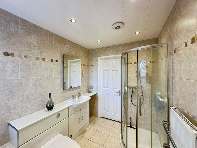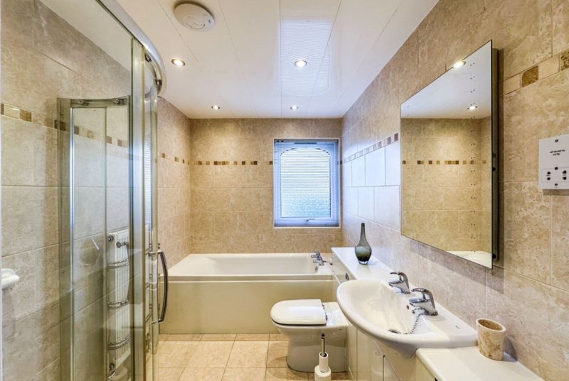To the opposite end of the living accommodation, you have three good sized bedrooms, two doubles, both of which come with fitted wardrobes, offering excellent storage, and the third is a single, which is currently being used as an office to suit. The family bathroom has been tiled from floor to ceiling with modern tiles and complimented with W.C., hand basin, bath tub and separate shower.