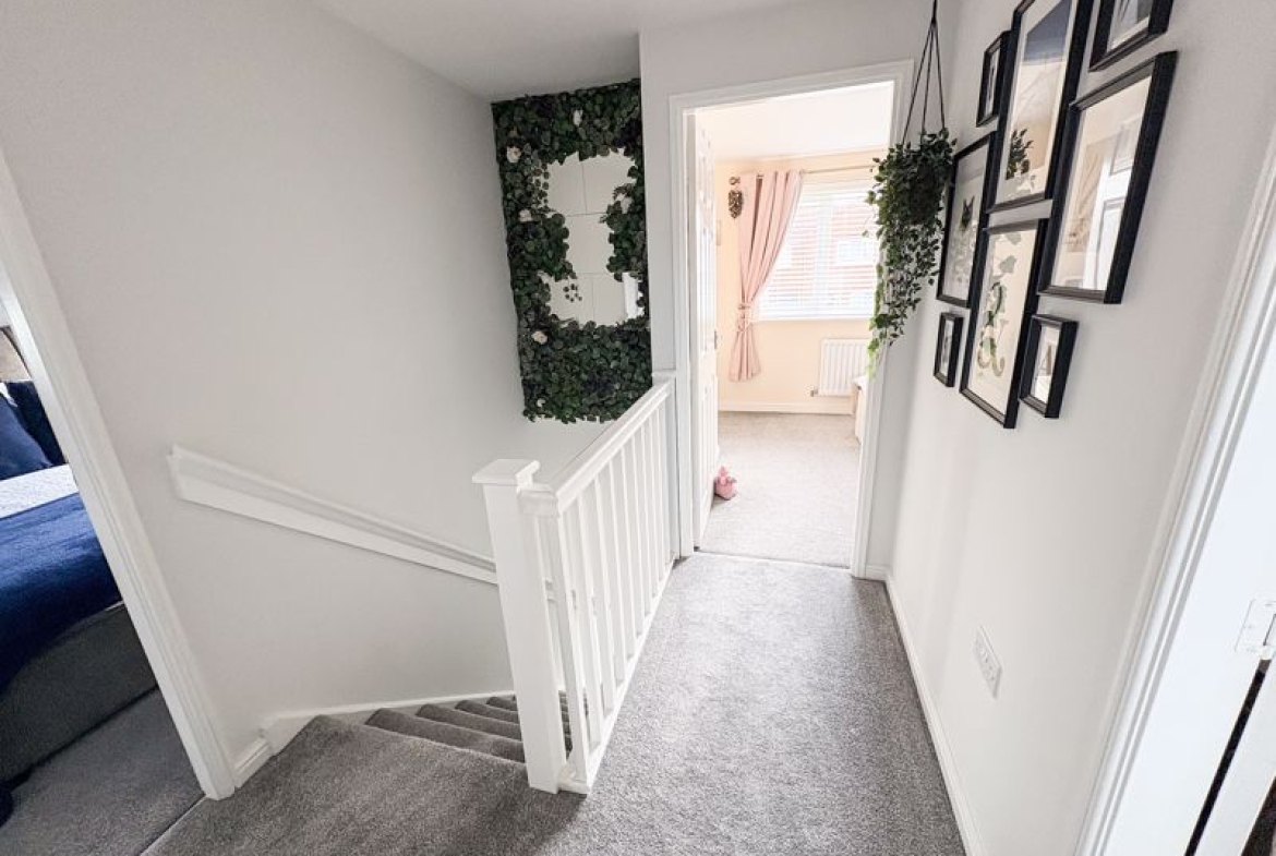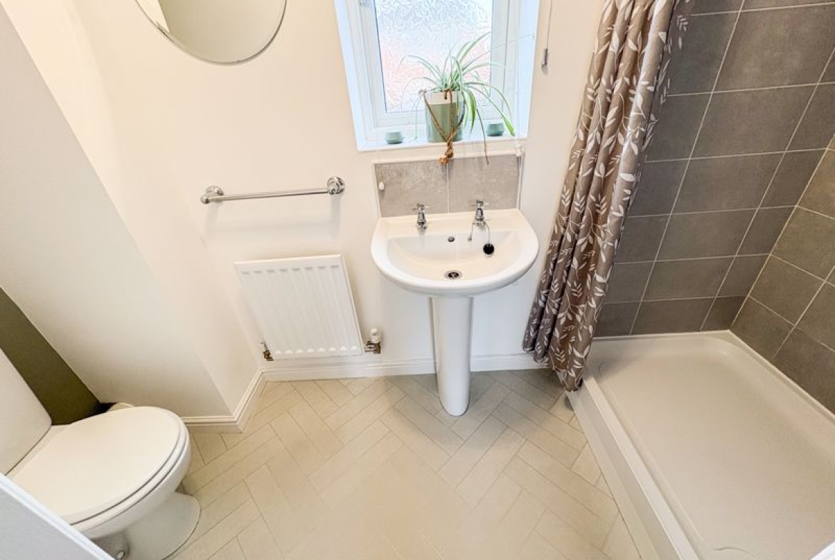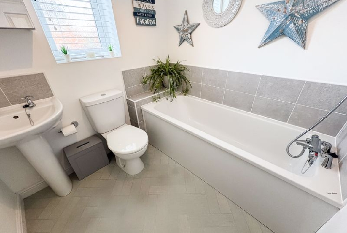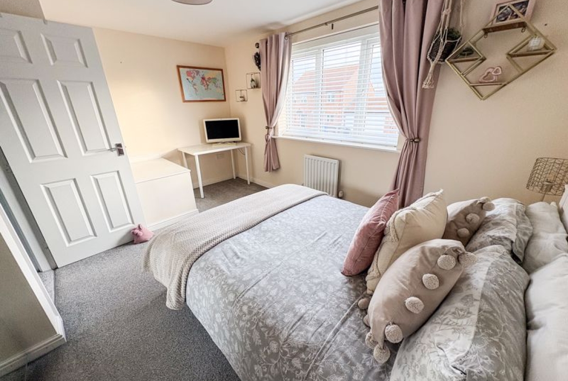 Upstairs, you’ll find three generous bedrooms, thoughtfully arranged to suit a growing family. The master bedroom features a private en-suite, offering parents their own peaceful retreat, while the remaining bedrooms provide excellent flexibility for children, guests or a home office. The modern family bathroom is beautifully finished, providing a comfortable and stylish space for the whole household.