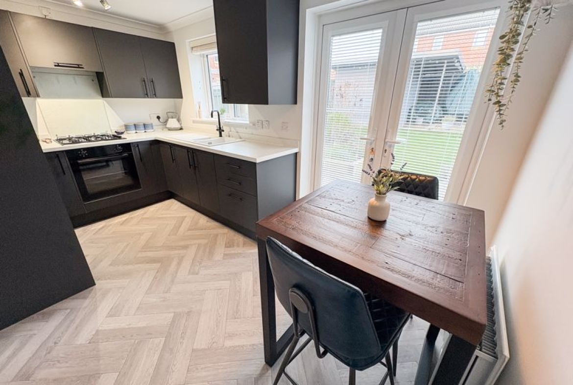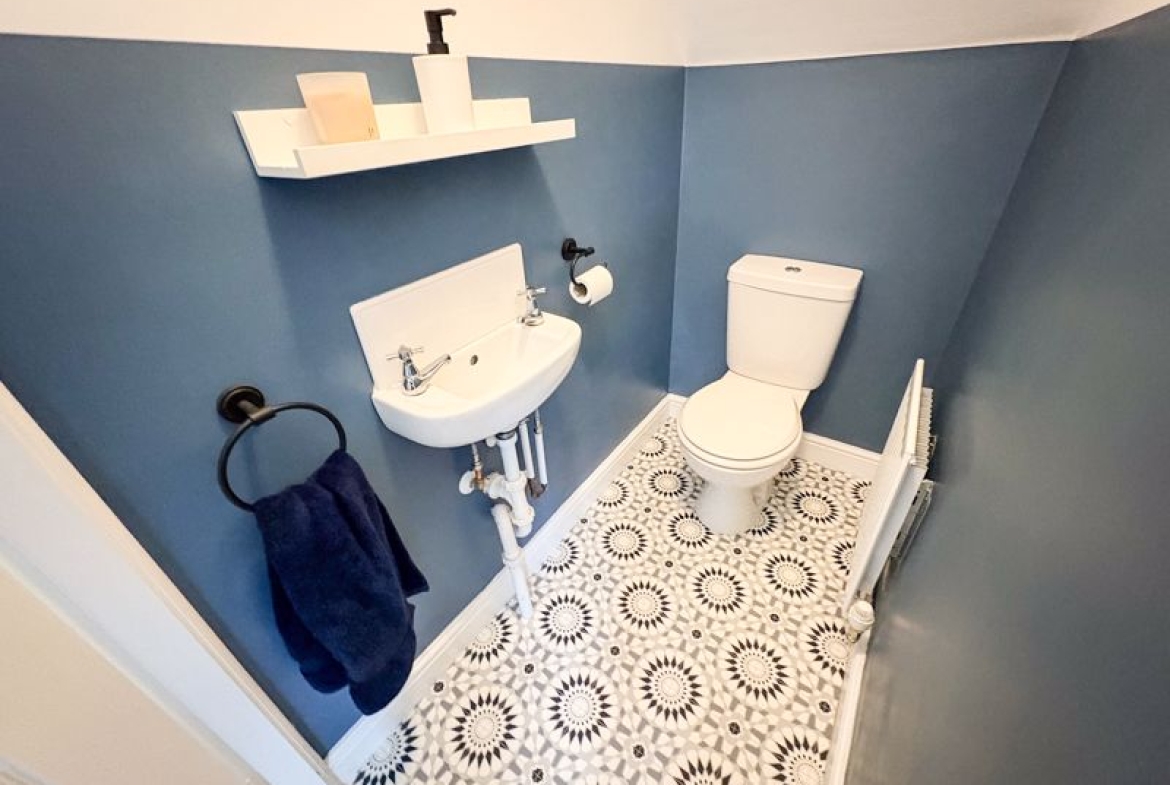 From the moment you step into the welcoming entrance hallway, you’ll appreciate the sense of space and warmth this home provides. The heart of the property is the splendid dining kitchen, a fantastic family hub with plenty of room for mealtimes, homework, or social gatherings. French doors open directly onto the rear garden, creating a seamless indoor–outdoor flow ideal for children to play or for summer entertaining. A downstairs cloakroom/WC adds practicality for busy family routines, while the bright, airy lounge offers the perfect spot for relaxing together at the end of the day.