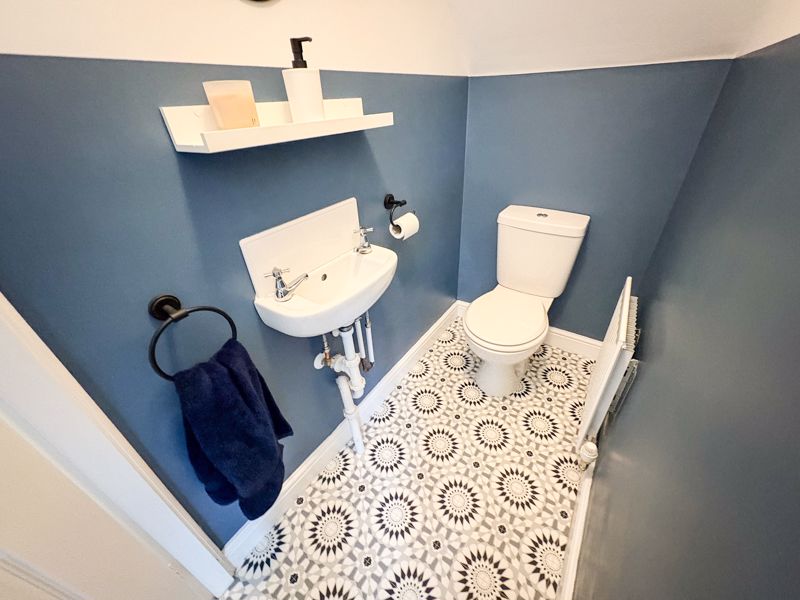 DOWNSTAIRS CLOAKS/W.C.: low level WC, hand basin and single radiator.