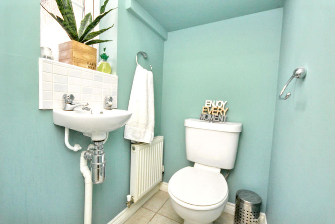 Close-coupled W.C | Wash-hand basin | Radiator | Tiled floor | UPVC double-glazed frosted window