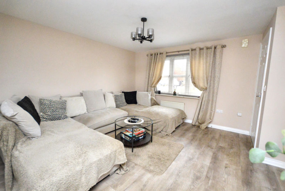 UPVC double-glazed window | Radiators | Laminate floor | Staircase to first floor | Doors to entrance hall and dining room