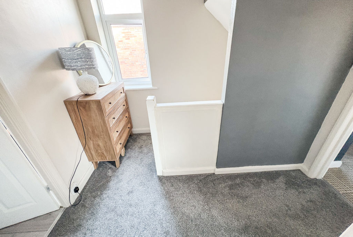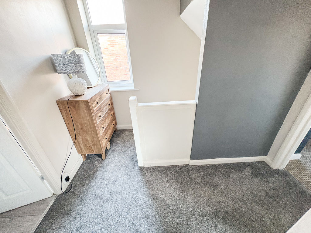 FIRST FLOOR LANDING AREA: Double glazed window to side, access to loft.