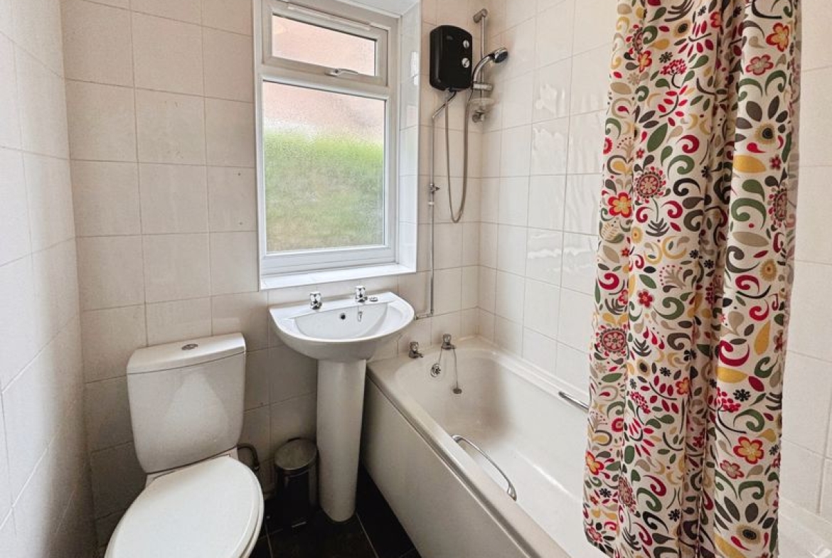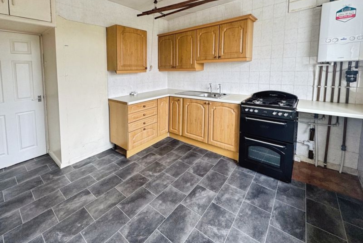 The property features three well-proportioned double bedrooms, delivering ample accommodation for a variety of needs. The kitchen includes generous dining space, making it suitable both for family meals and entertaining. The bathroom is fitted with a shower over the bath, providing convenience and practicality.