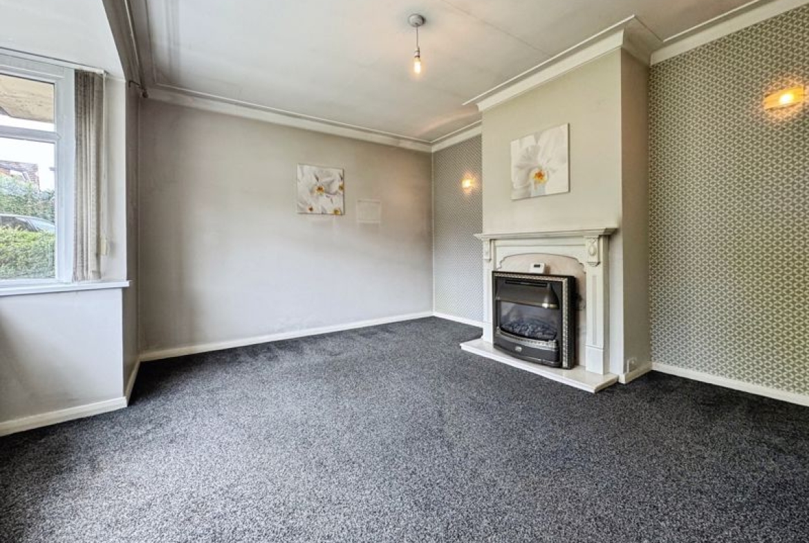 Inside, the bungalow is maintained in good condition throughout. There is a single reception room that benefits from large windows, allowing for plenty of natural light, as well as a fireplace that creates a welcoming focal point. The room also offers a pleasant garden view, enhancing the sense of space and tranquillity.