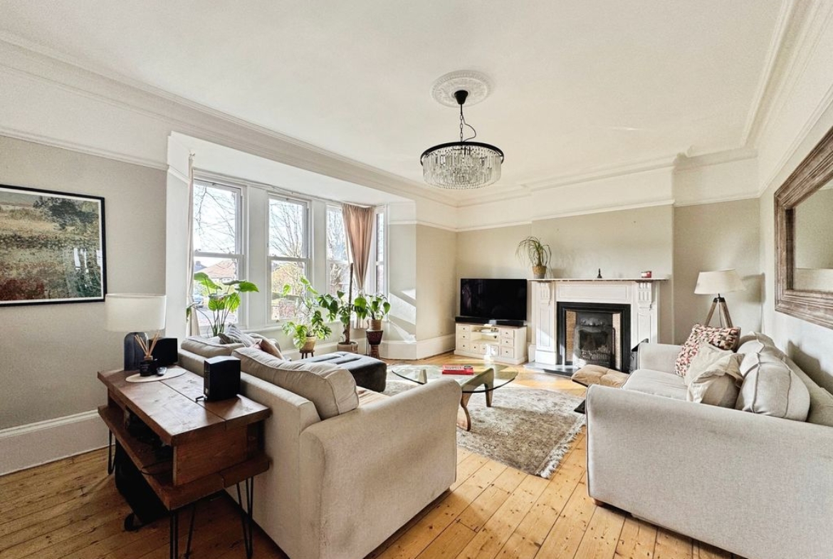 Bay sash windows, open fire with surround, ceiling rose, coving to ceiling, picture rail and solid wood flooring.