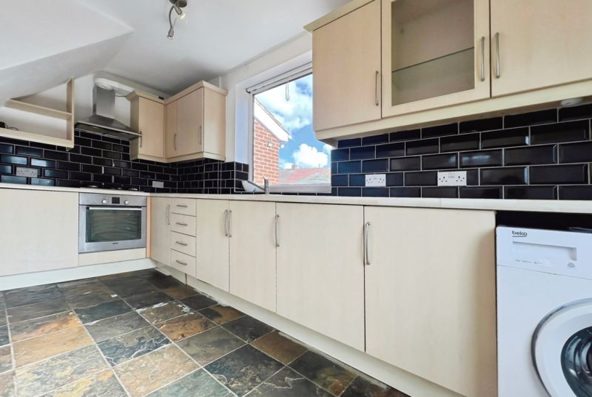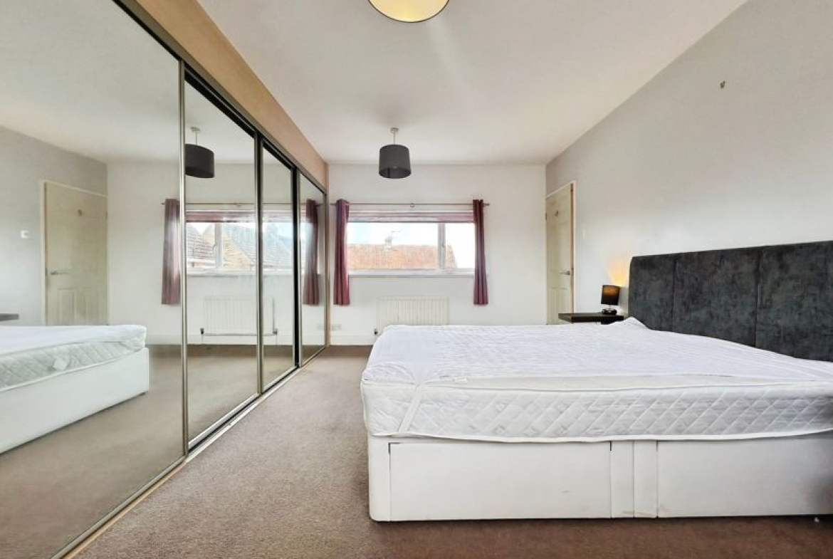The property boasts a spacious, furnished dining kitchen, filled with natural light and offering plenty of room for meal preparation and dining. Both bedrooms are doubles, with built-in wardrobes for convenient storage. The master bedroom provides additional space and comfort. The modern family bathroom is equipped with a corner bathtub, perfect for unwinding after a long day.