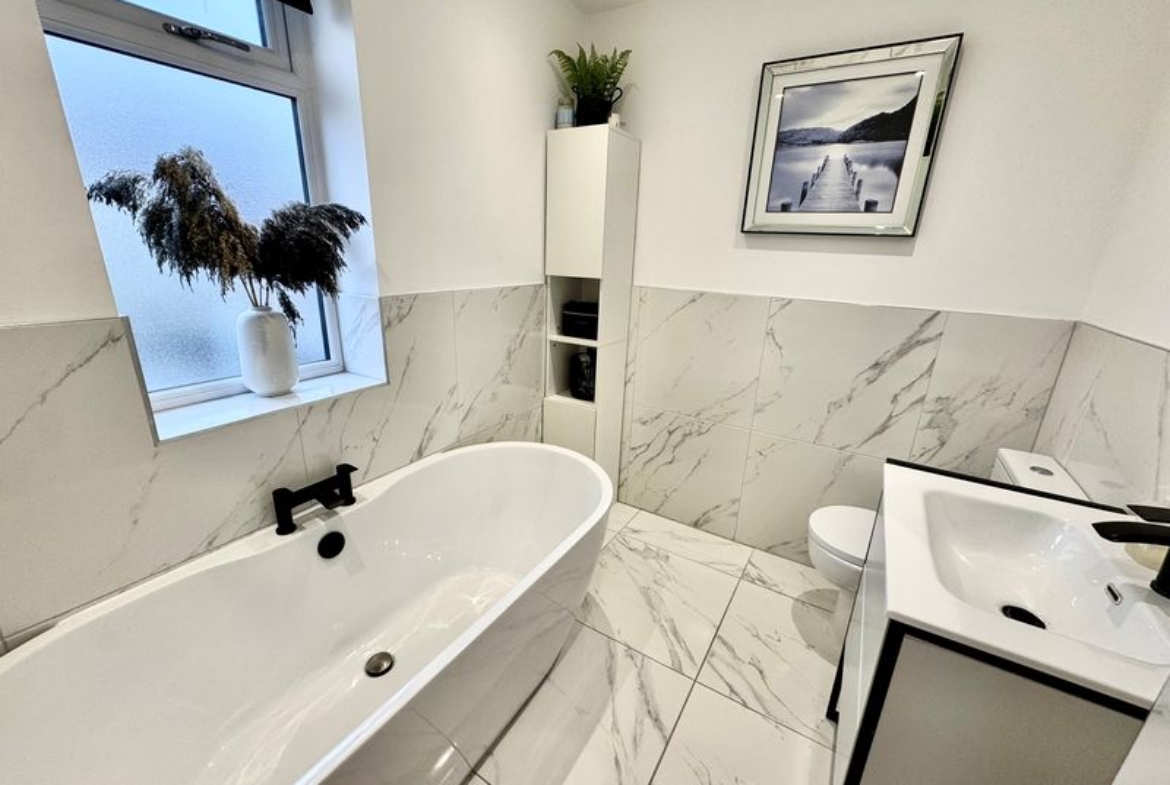 Showcasing style, space and gorgeous-ness, this family home boasts a super location on the highly sought after Marden Farm Estate. With a beautiful Southerly aspect, outdoor living is also a real plus topping up your vitamin D levels in the summer! Within catchment for popular local schools, shops, bus routes and a 10-15 minute walk to Cullercoats Metro and sea front. Also a short drive to Whitley Bay town centre. Beautifully and thoughtfully re-designed, finished and presented to the highest of standards, creating excellent space for the family. With an entrance porch and impressive hallway, downstairs cloaks/w.c., front facing lounge with be-spoke fitted shelving, storage, media wall and infinity fire. The stunning, extended kitchen, dining and family room is the true heart of the home, designed with both everyday living and entertaining in mind. Flooded with natural light from a large roof lantern, French doors and full-width bi-fold doors that seamlessly open onto the garden, the space effortlessly blends indoors and out. The contemporary and stylish kitchen features a sleek central island with breakfast bar seating, the fabulous kitchen also benefits from integrated appliances. There is a large, defined dining area and spacious family room zone, providing plenty of room for relaxing with the family and hosting, all set against stylish herringbone flooring and modern finishes throughout, separate family room/office/ground floor bedroom with French doors out to the garden, shower room and utility space with access through to the garage with electric roller garage door. There is a split level first floor landing, for those of you that love the laundry the cupboard with laundry chute will provide hours of entertainment, access to four generous bedrooms, the principal bedroom with a luxurious en-suite shower room. The family bathroom has been re-created to offer the ultimate in peace and calm, with freestanding bath taking centre stage, complimented by striking black fittings in a modern contrast, the walls and floor showcases a marble effect tiling, providing a clean and stylish finish. Enjoy the landscaped rear garden which has a Southerly aspect, with patio areas, feature borders and artificial lawn, front drive and part converted garage. Freehold. EPC: D, Council Tax Band: D. Gas, Electric, Water, Heating, Drainage: Mains Connected. Broadband: Fibre, Mobile Phone Blackspot: No