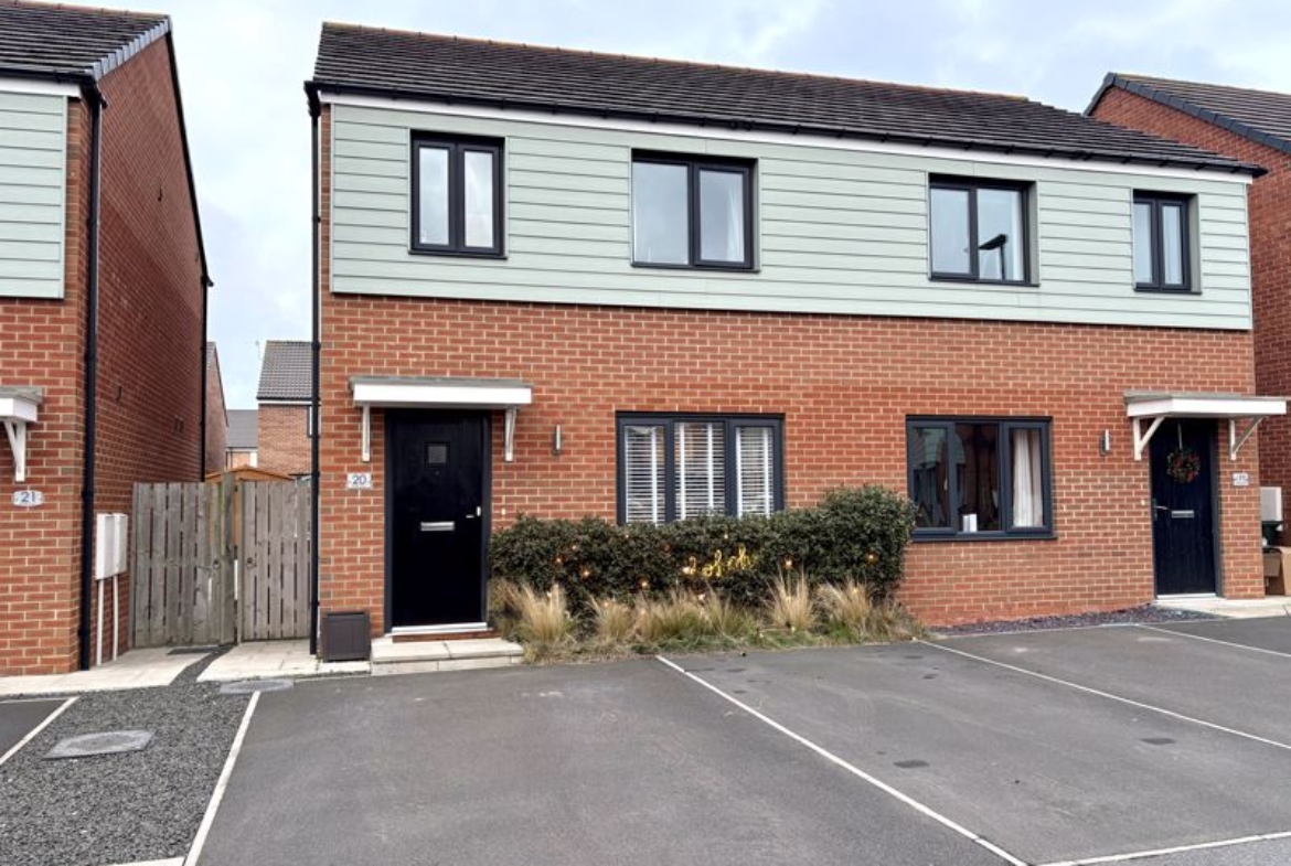 A rather special, modern three bedroom semi detached home built by Bellway in 2018 on Biscop Court. Situated in a cul-de-sac on this highly desirable development the entrance lobby gives access to a convenient guest w.c, and a fabulous spacious lounge providing a light and comfortable living space which flows seamlessly in to a stunning open plan kitchen with integral appliances. The dining area has French doors to enclosed rear garden which offers a great outdoor space for hosting summer gatherings. Upstairs there are three bedrooms en suite to master and a stylish family bathroom. To the front there is the added benefit of a double width driveway providing off street parking. A fantastic home truly worthy of an early inspection to secure.
