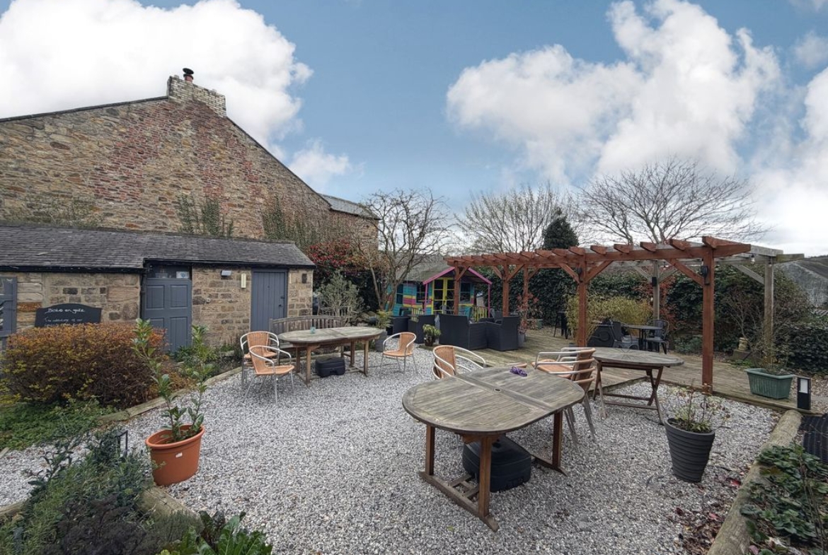 The property benefits from a generous south-facing garden, thoughtfully arranged for outdoor dining with approximately 40 covers. Additional features include outbuildings and a recently constructed timber unit accommodating commercial refrigeration. There are also three designated parking spaces.