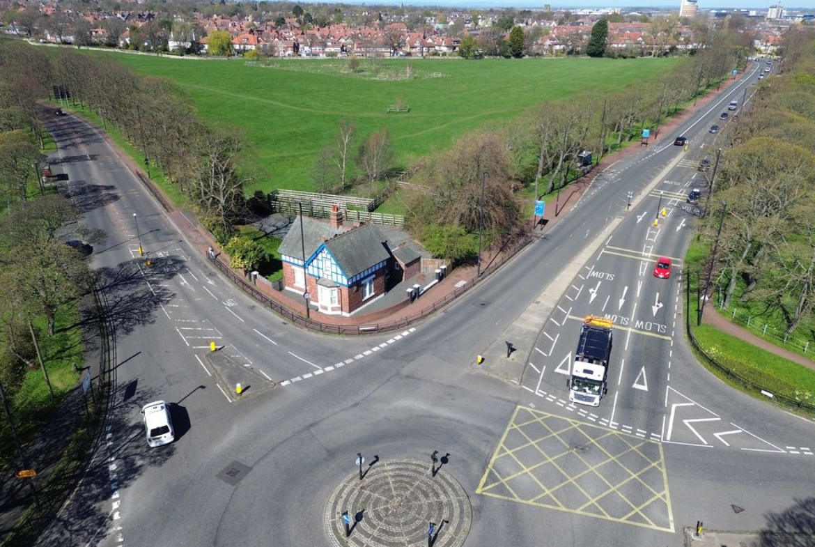 The property occupies a highly prominent position at the well-known Blue House roundabout, one of Newcastle’s key arterial junctions linking major routes across the city and wider region. This busy intersection accommodates a significant daily volume of traffic, serving commuters travelling to and from Newcastle city centre, nearby business parks, the Freeman Hospital, HMRC offices, and surrounding residential areas.