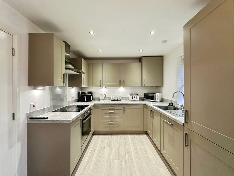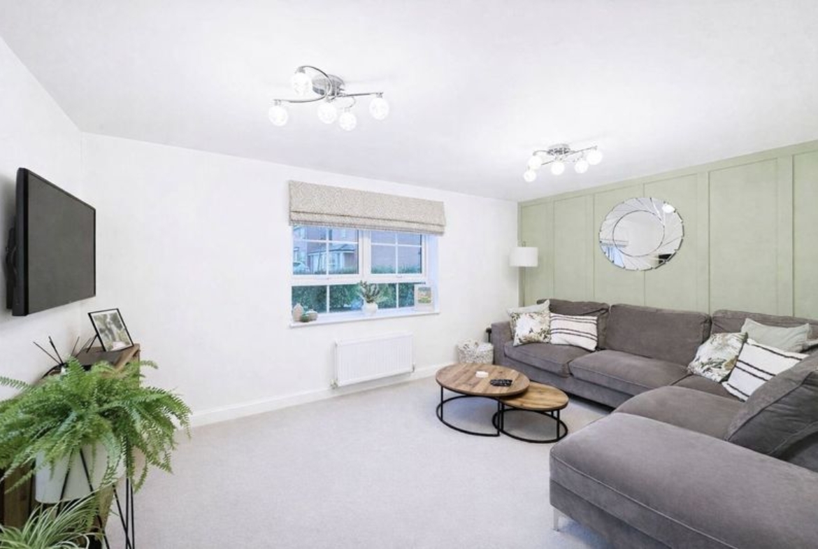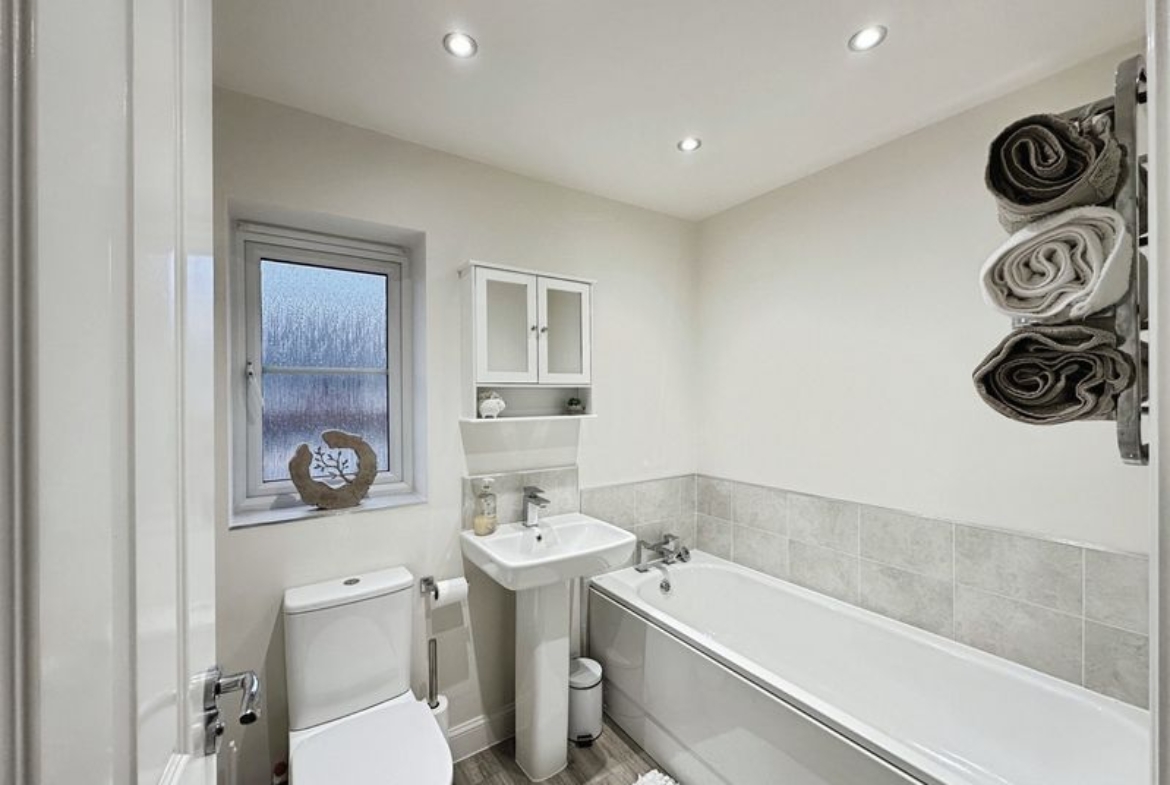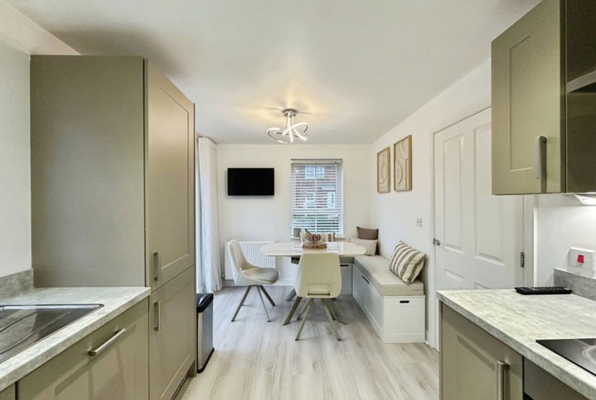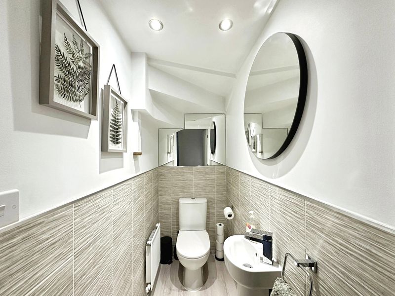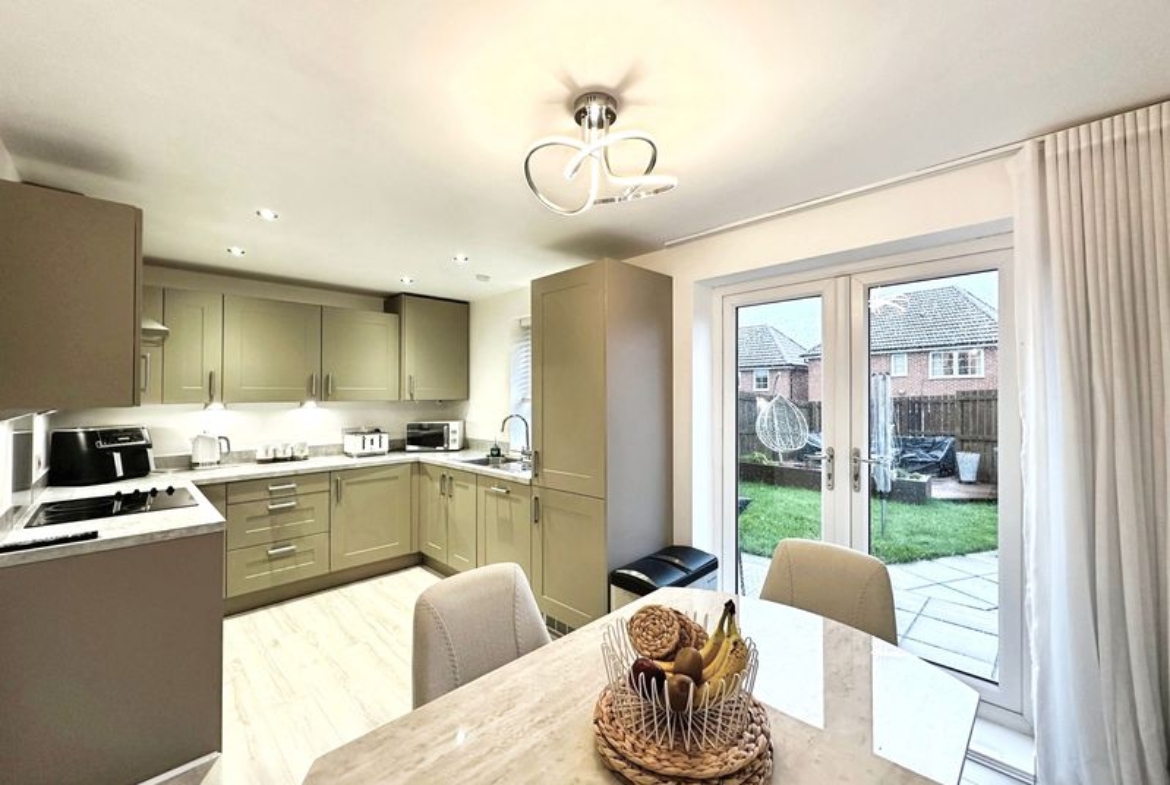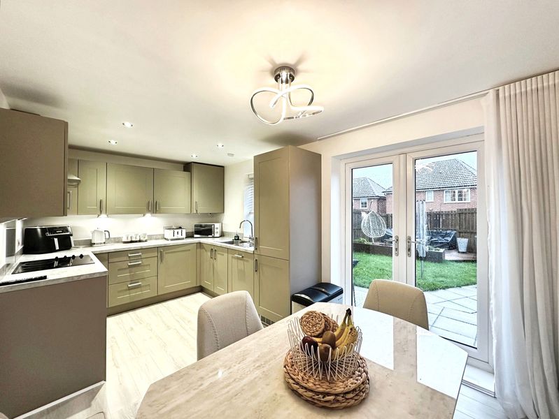 The layout comprises:- Entrance Hall, downstairs W.C., bright and spacious lounge with floods of natural light due to the double aspect views. The lounge has been carpeted throughout and complimented with a sage panelled feature wall. The modern kitchen/diner is a fantastic space with ample room for your own dining table with chairs, with double patio doors giving direct access to the rear garden. A high-end kitchen has been fitted with wall and base cabinets, offering excellent storage, with integrated appliances to include fridge/freezer, washing machine, dishwasher and electric oven/hob. The kitchen makes full use of the views over garden to the rear.