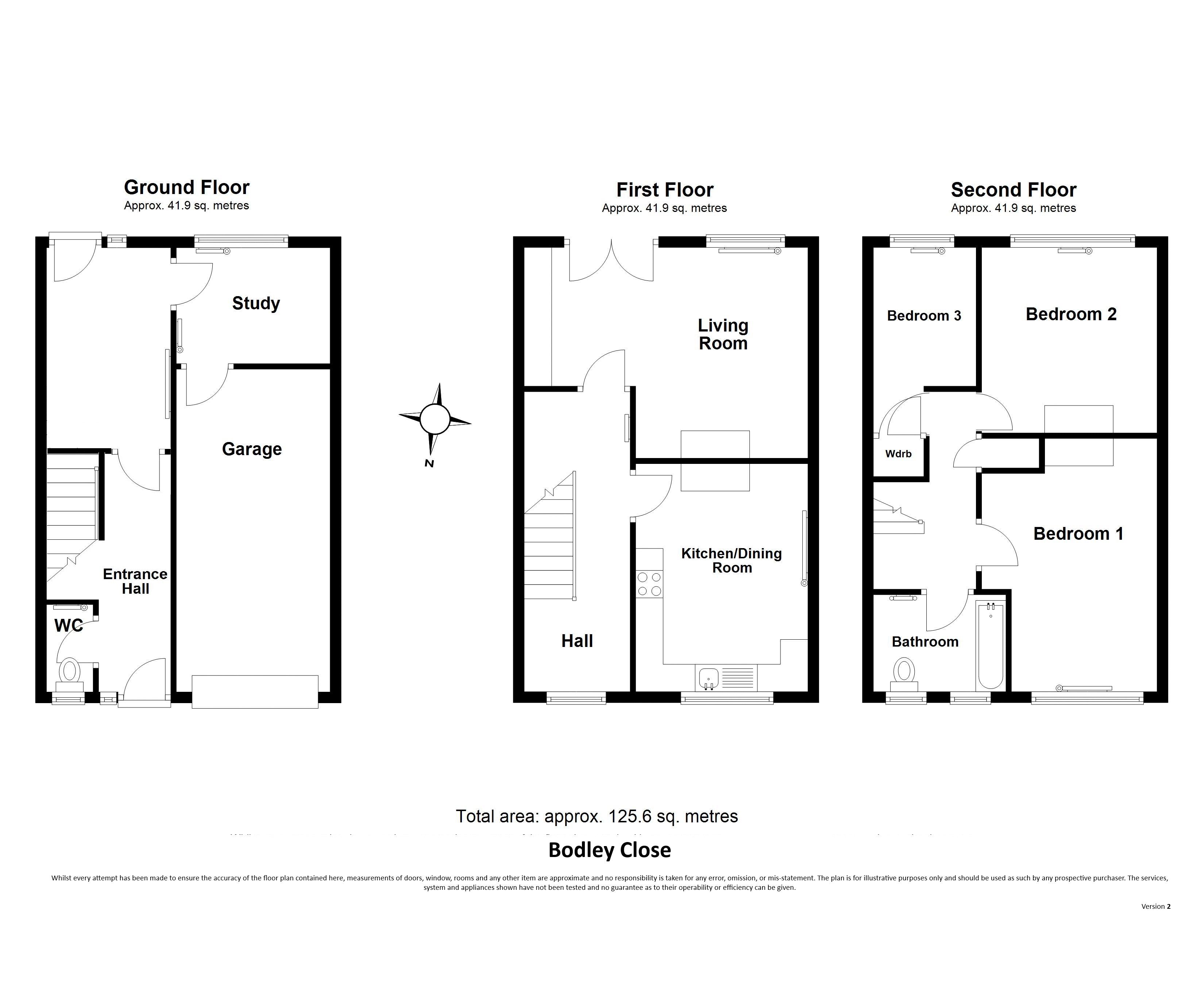 Briefly comprising entrance hallway leading to an inner reception area. There is a ground floor WC together with a utility which provides access to the garage. To the first floor is a fully width sitting room with balcony overlooking the rear garden. There is also a good size breakfasting kitchen. To the second floor are 3 bedrooms together with a modern 3 piece bathroom suite with shower. Externally to the rear is a large southerly facing garden with patio area with driveway to the front providing ample off street parking. This leads to an integrated garage with up and over door. The property also benefits from UPVC double glazing and gas fired central heating via combination boiler.