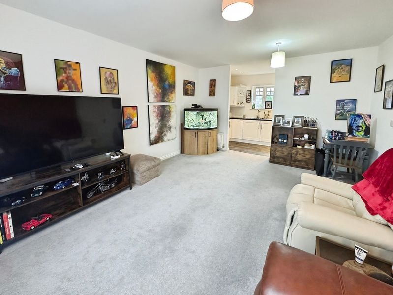 The lounge is a generous room situated to the front elevation, with a large window allowing plenty of natural light to flood in. The space is open plan to the kitchen and offers ample room for both living and dining furniture.