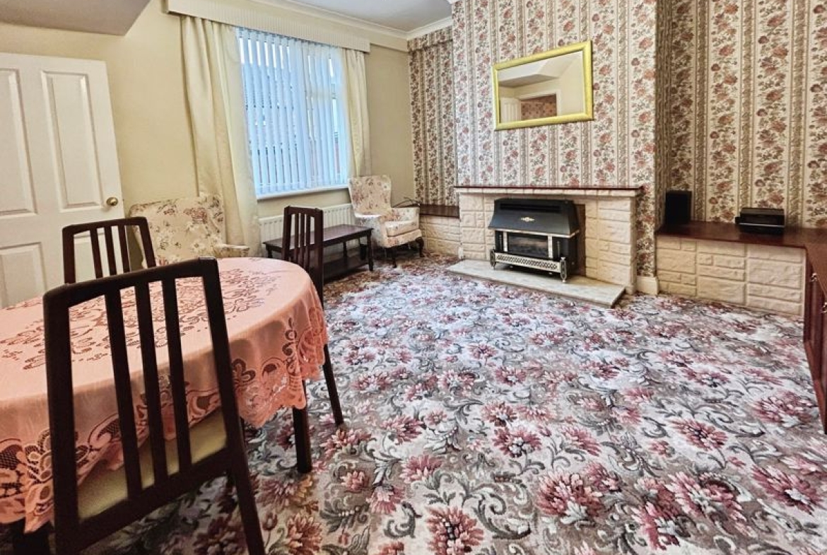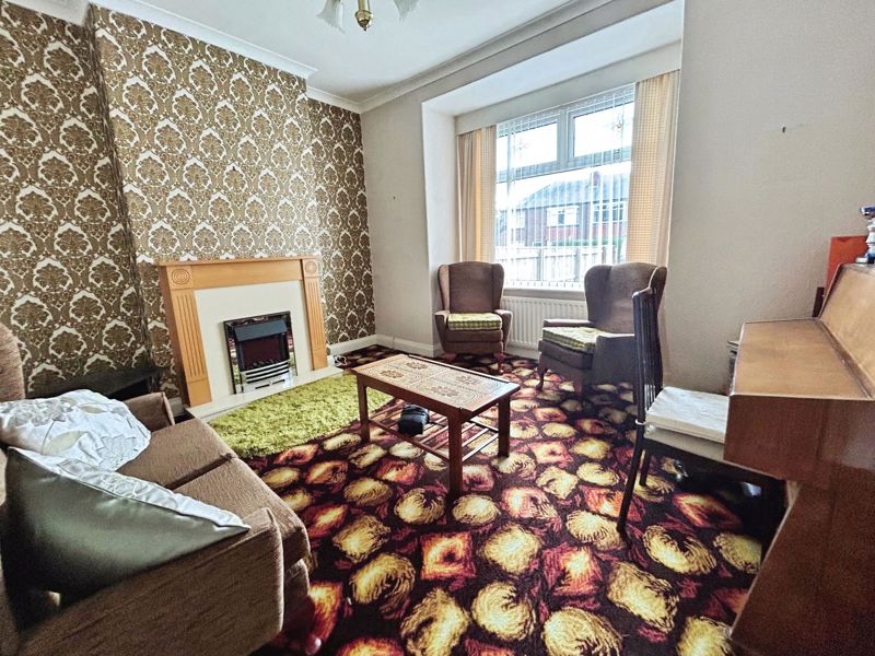 Feature fire place with surround, electric fire, double radiator, coving to ceiling, double radiator, UPVC double glazed window to front.