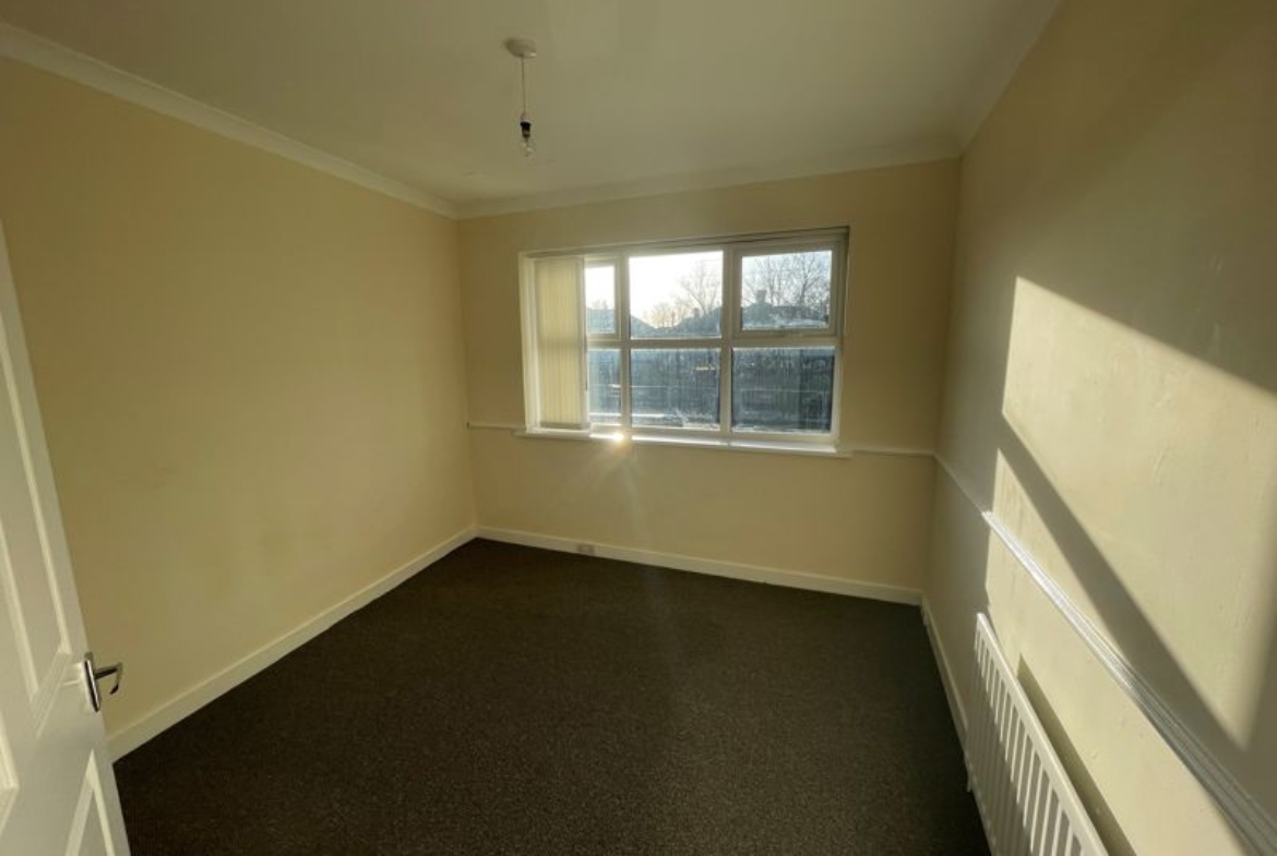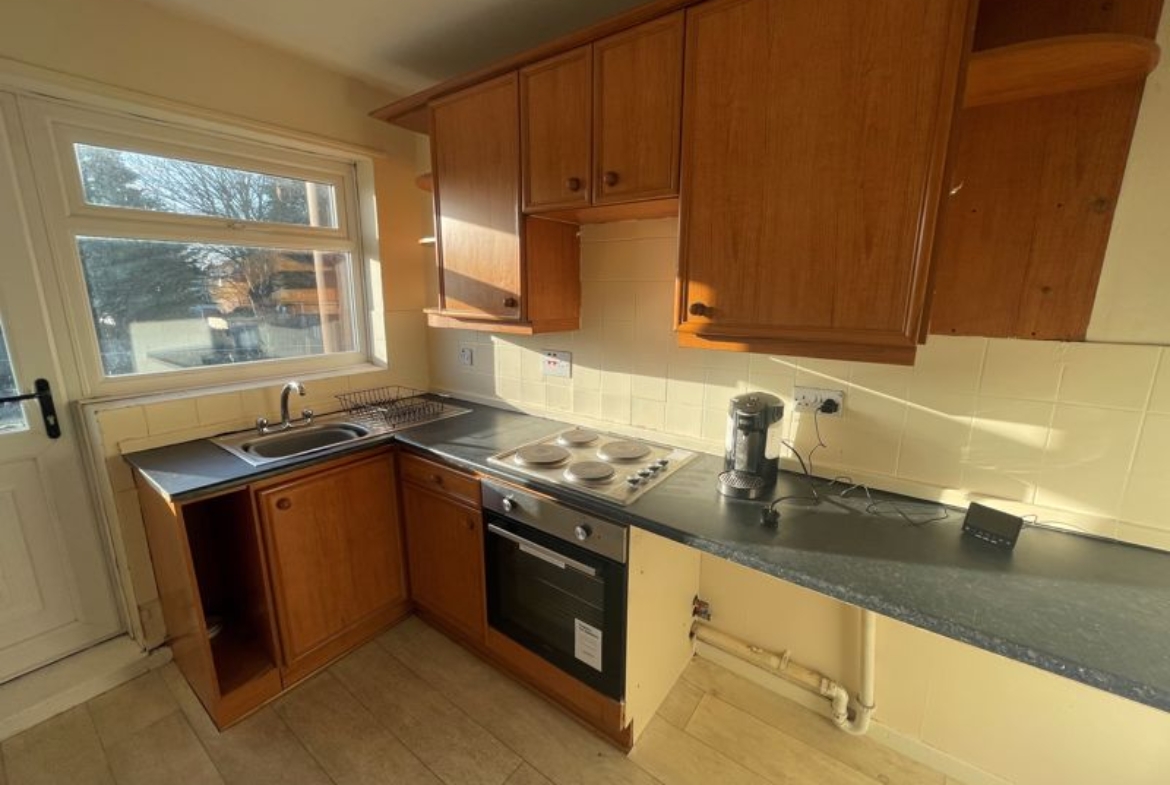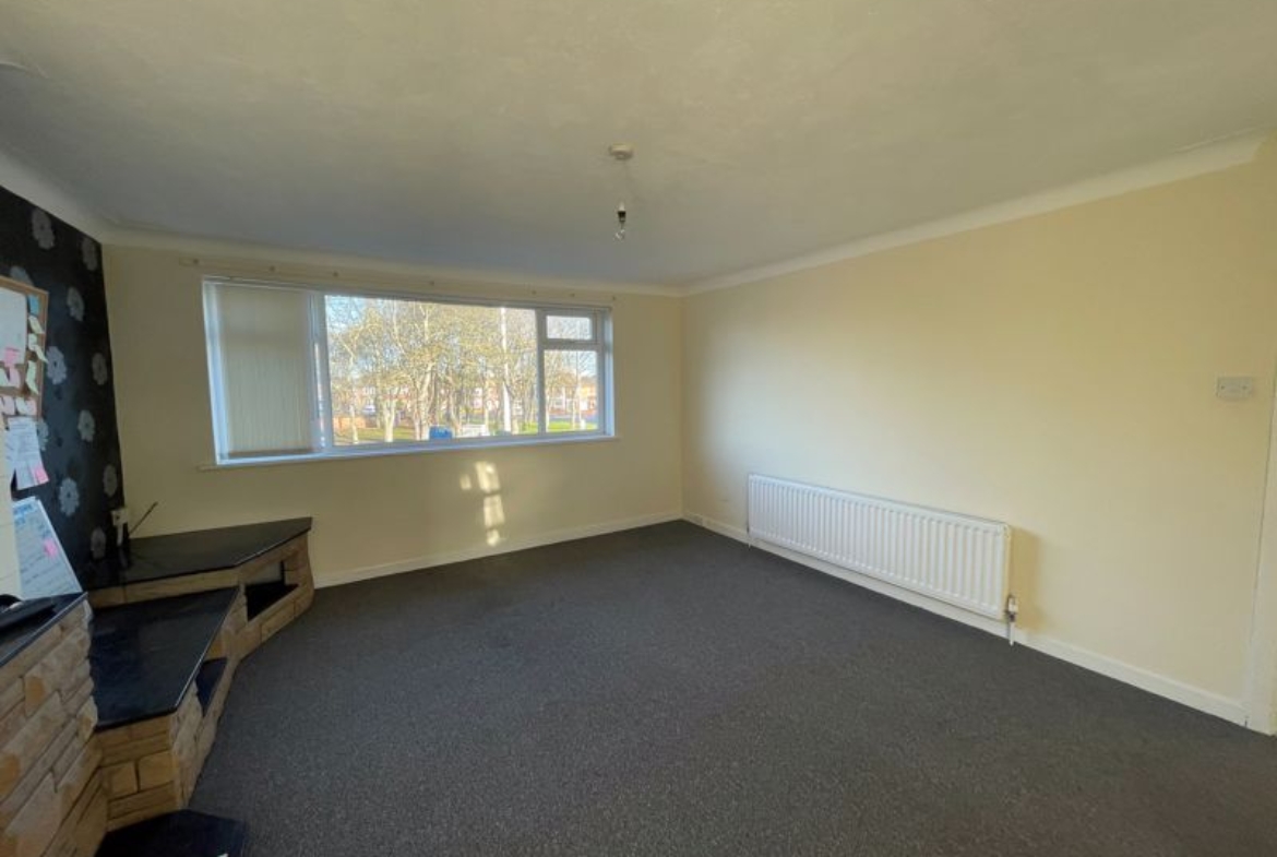 A generously sized first-floor flat situated in Broadway Circle, offering a central location close to all amenities. The property comprises an entrance with stairs leading to a hallway, two good-sized bedrooms, a bathroom, and a large living room with a dining area. The kitchen includes an oven and a back door with stairs providing access to the outside area. Please call 01670352900