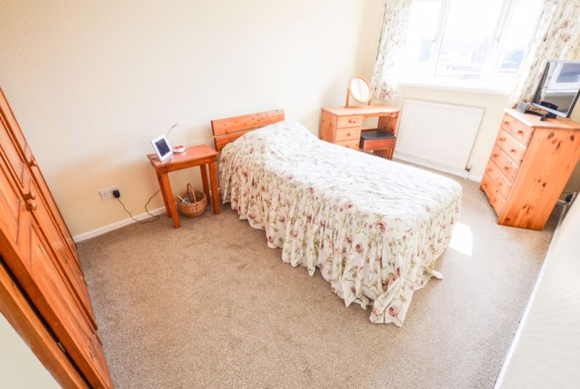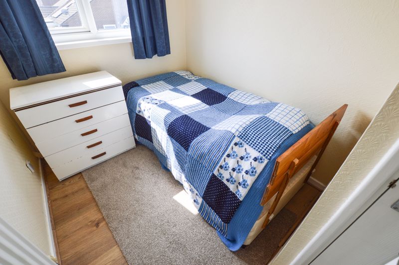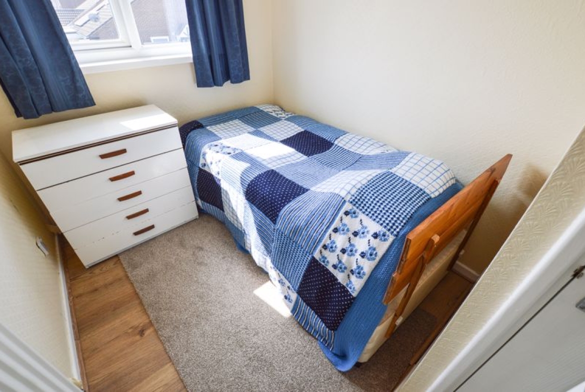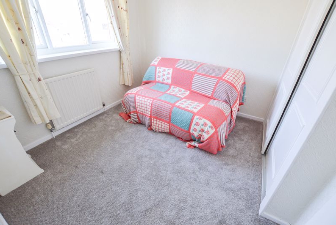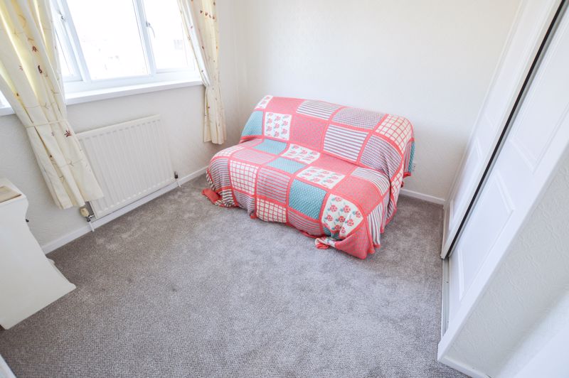 BEDROOM THREE: (front): 7’05 x 6’48, (2.14m x 1.97m), double glazed window to front, single radiator and built in cupboard.