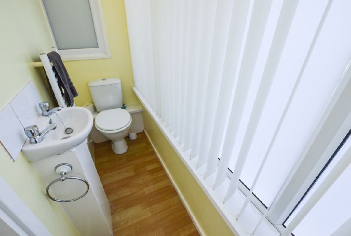 DOWNSTAIRS CLOAKS/W.C.: low level w.c, wash hand basin, double glazed window to side.