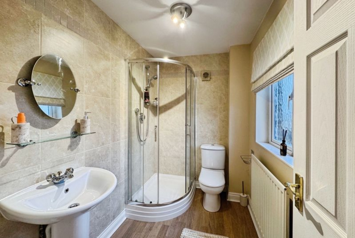 To the upper floor of the accommodation, there are two double bedrooms and two singles, with both of the doubles having large fitted wardrobes offering excellent storage. All rooms have been carpeted throughout and finished beautifully in modern décor. The main bedroom further benefits from its own en-suite shower room fitted with W.C, hand basin and shower cubicle. The family bathroom has been finished with a modern crisp white tile and fitted with W.C., hand basin, bath and shower over bath.