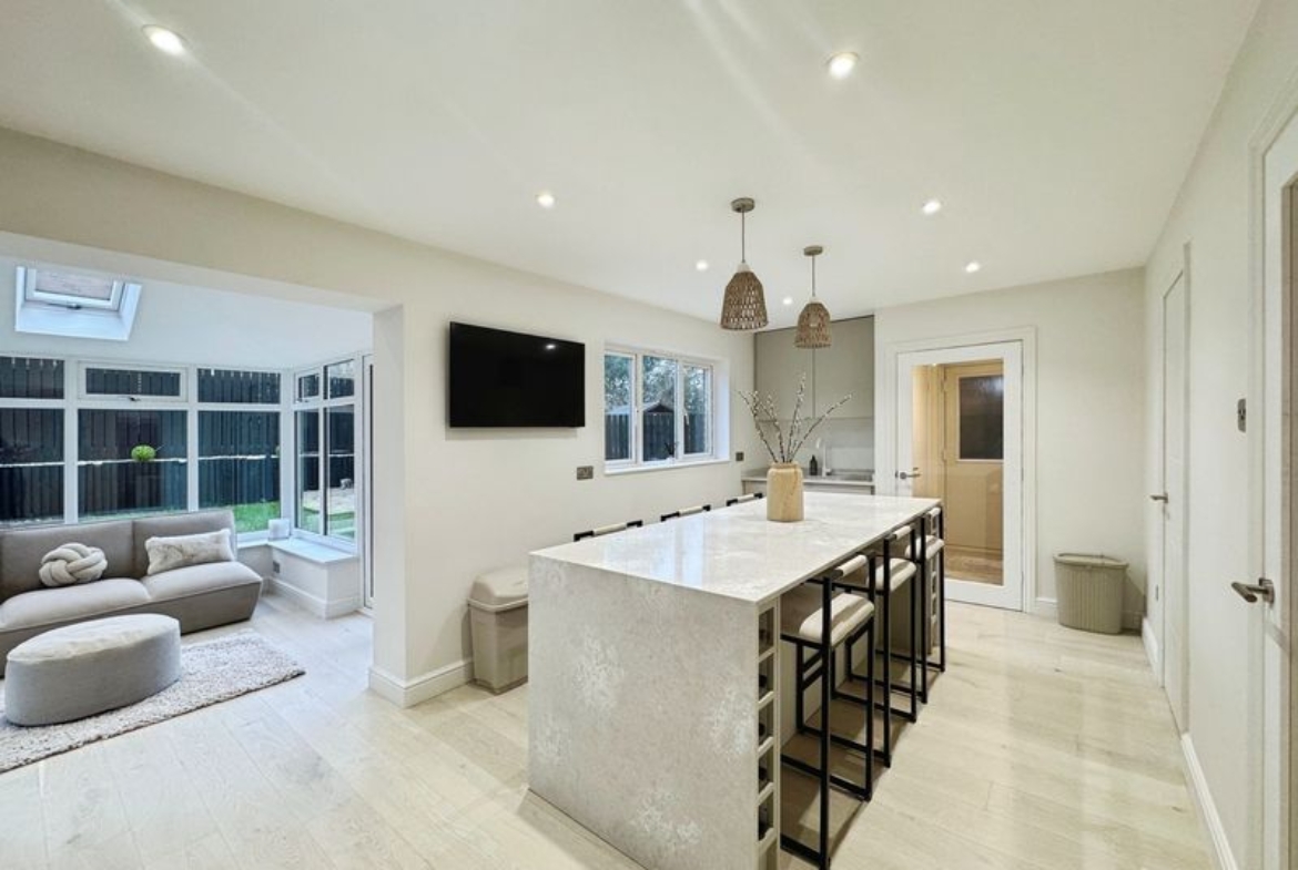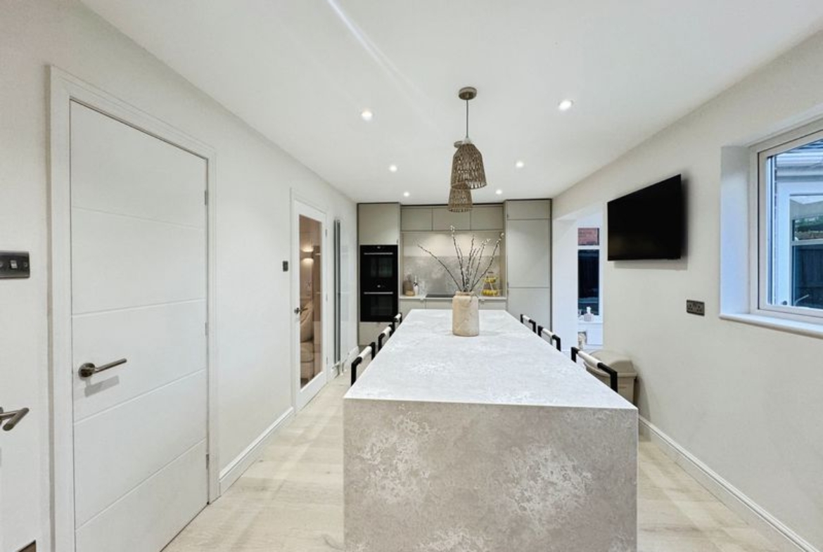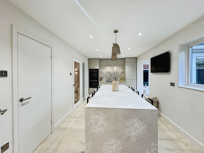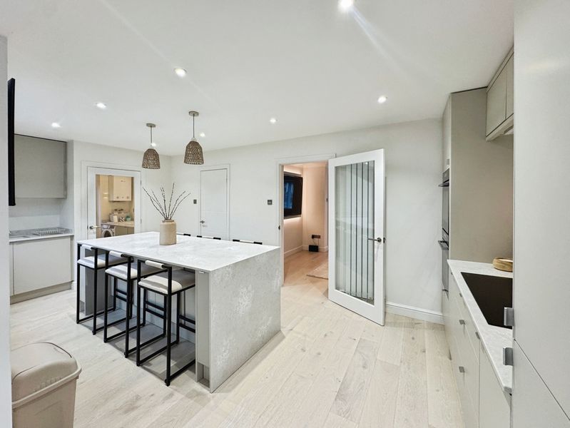 The property briefly comprises:- Entrance hallway, impressive bright and airy lounge with floods of natural light and views overlooking the front garden from the large bay window. This leads through to a spectacular open plan kitchen and conservatory, making full use of those garden views to the rear. The high spec kitchen has recently been fitted with a range of modern wall and base units, with an island in the middle, offering an abundance of storage throughout. Appliances include a fridge/freezer, induction hob with large pan drawer, double oven integrated dishwasher. There is a large walk-in storage cupboard in the kitchen and additional separate utility with downstairs cloakroom.