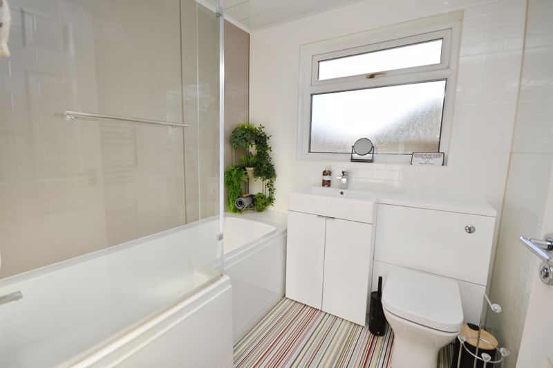 P shaped bath with glass shower screen incorporating a shower over | Fitted cabinet incorporating a porcelain wash-hand basin and a close-coupled W.C