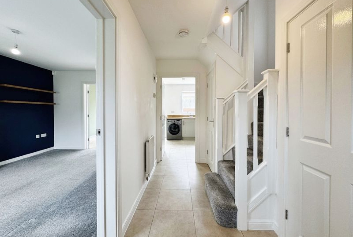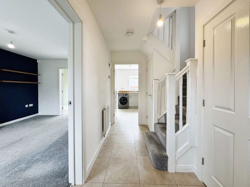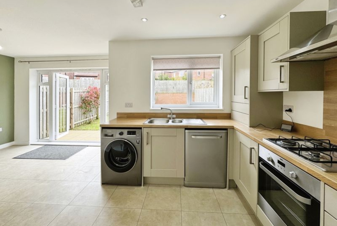The property briefly comprises:- Entrance hallway, downstairs W.C, bright and airy lounge with grey carpets and modern décor. The spacious open plan kitchen and dining area makes full use of the garden views through the patio doors to the rear. The high spec kitchen has been fitted with a range of wall and base units, offering an abundance of storage and appliances to include a four-ring gas hob, electric oven, fridge/freezer, dishwasher and washing machine.